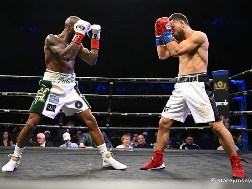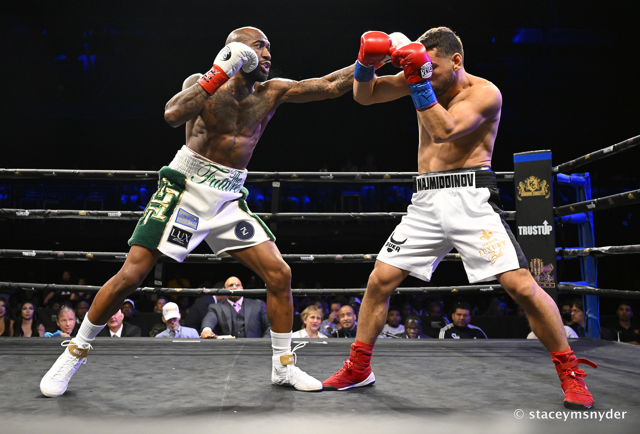Royal Roundz's Main Event, featuring boxing champion Charles Hatley and his New York based opponent from Uzbekistan, was short and shocking. The bell rings and Najmitdinov comes out swinging. Hatley seemed unbothered, deflecting or countering many of his opponents attacks. However, Najmitdinov lands a strong shot and the intensity of the exchange quickly picks up. Hatley increases pace and a cut opens above Najmitdinov's eye. This could have been a major problem in later rounds, but the fight would end at 2 minutes and 18 seconds in the second round. Early in the second, Hatley gains momentum, landing strong counters to both the body and head. Najmitdinov returns with a strong left hand, but it appears that Hatley shoot it off and get right back in the fight. However, another strong well placed left puts Hatley on the canvas. He attempts to make his way to his feet, but struggles to stay steady. Referee Ruben Perez quickly calls the fight, making Najmidinov the USNBC Welterweight Champion.