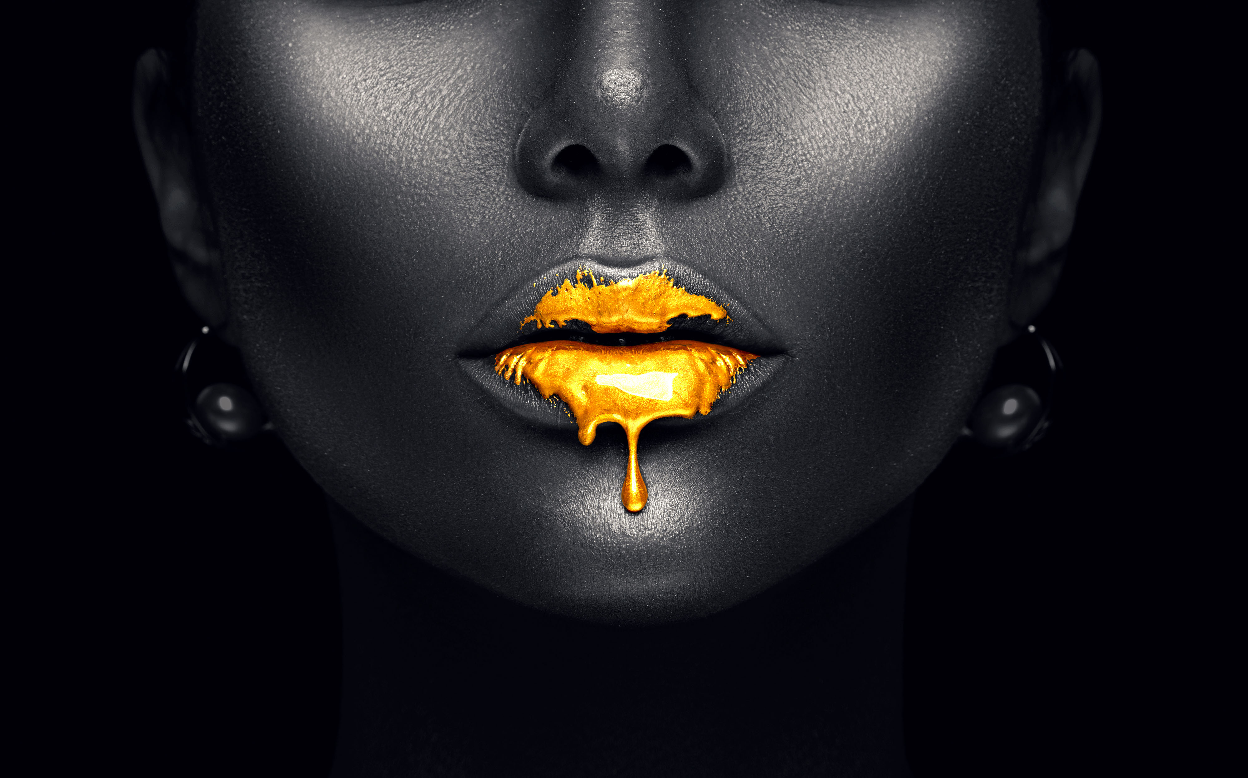 Créé à partir d’images de : Wirestock - "Fashion show, catwalk event, runway show, fashion week themed photograph." • Miss V - "Fashionable woman in bold red coat and pink trousers walking with style, holding a chic handbag.,Stylish street fashion editorial with motion blur, urban elegance, and modern sophistication." • Subbotina Anna - "Gold paint drips from the sexy lips, golden liquid drops on beautiful model girl's mouth, creative abstract makeup.,Beauty woman face isolated on black" • chokniti - "young people urban city lifestyle, street outdoor activity and walking on the road"