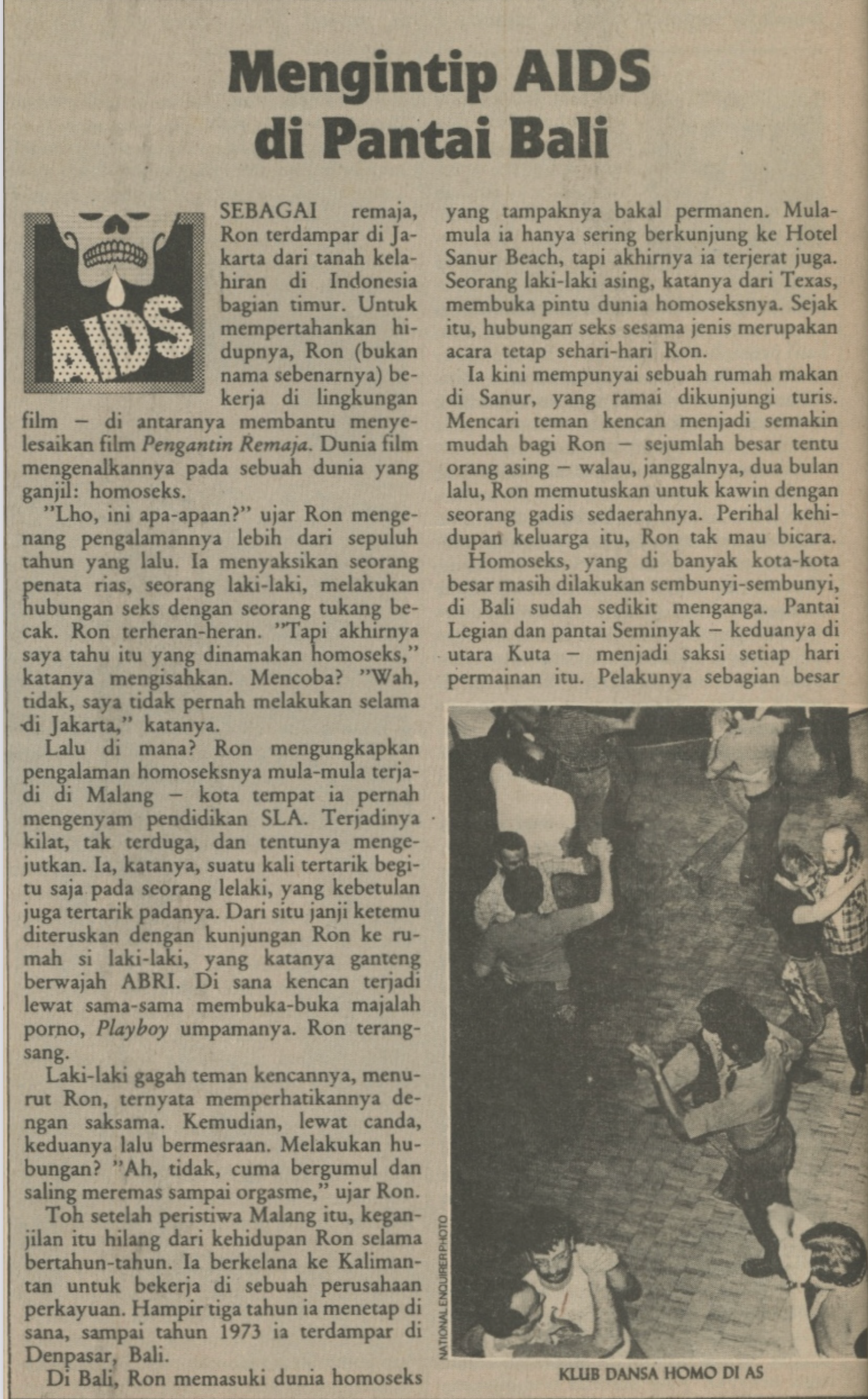 These media narratives would be exacerbated when in 1987, the Indonesian Health Department announced the first official AIDS related death in Indonesia - a gay Dutch national based in Bali.