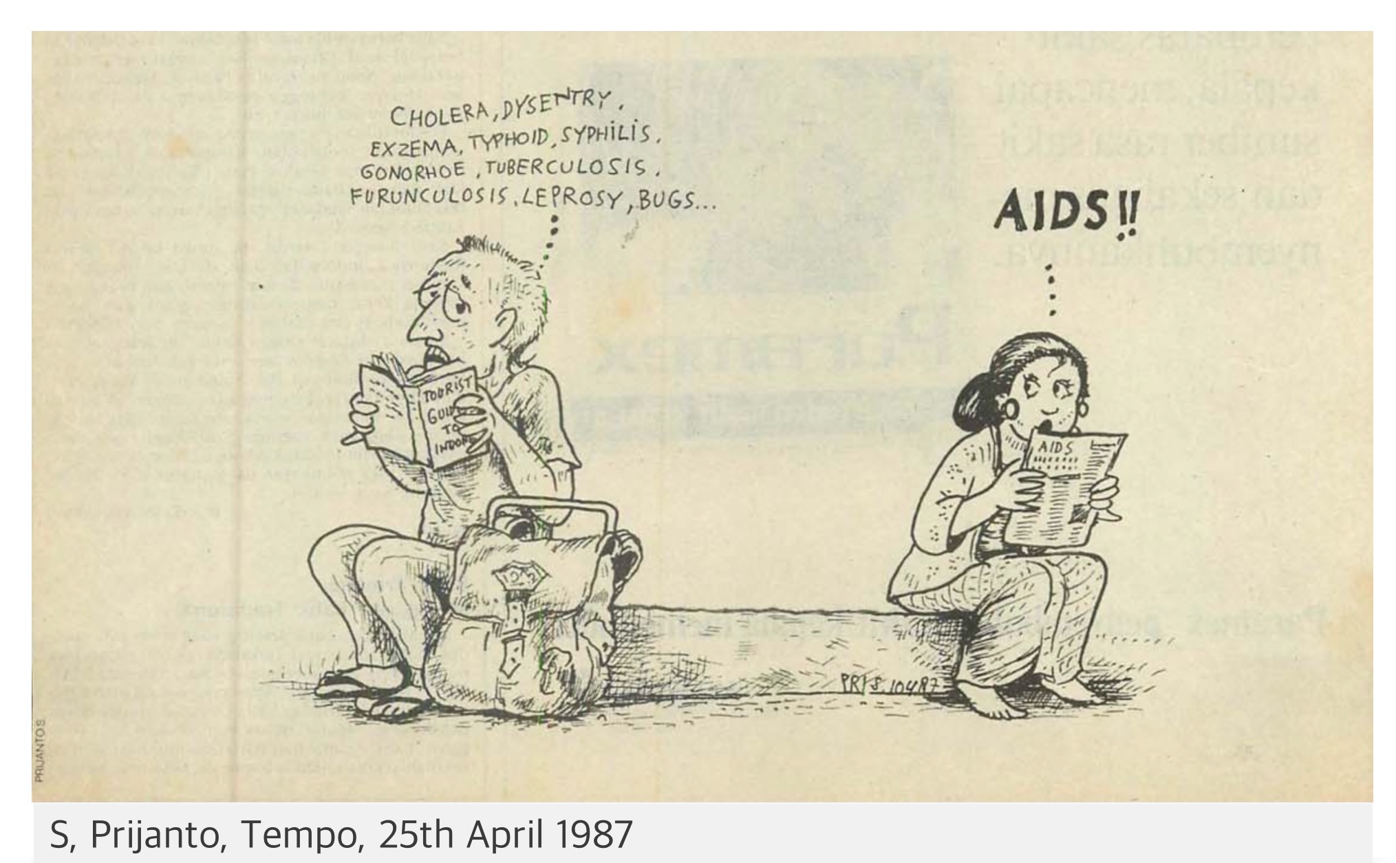 In parallel to the conflation of HIV with homosexuality and waria, the growing HIV pandemic was also presented as a threat brought into Indonesia through tourism.