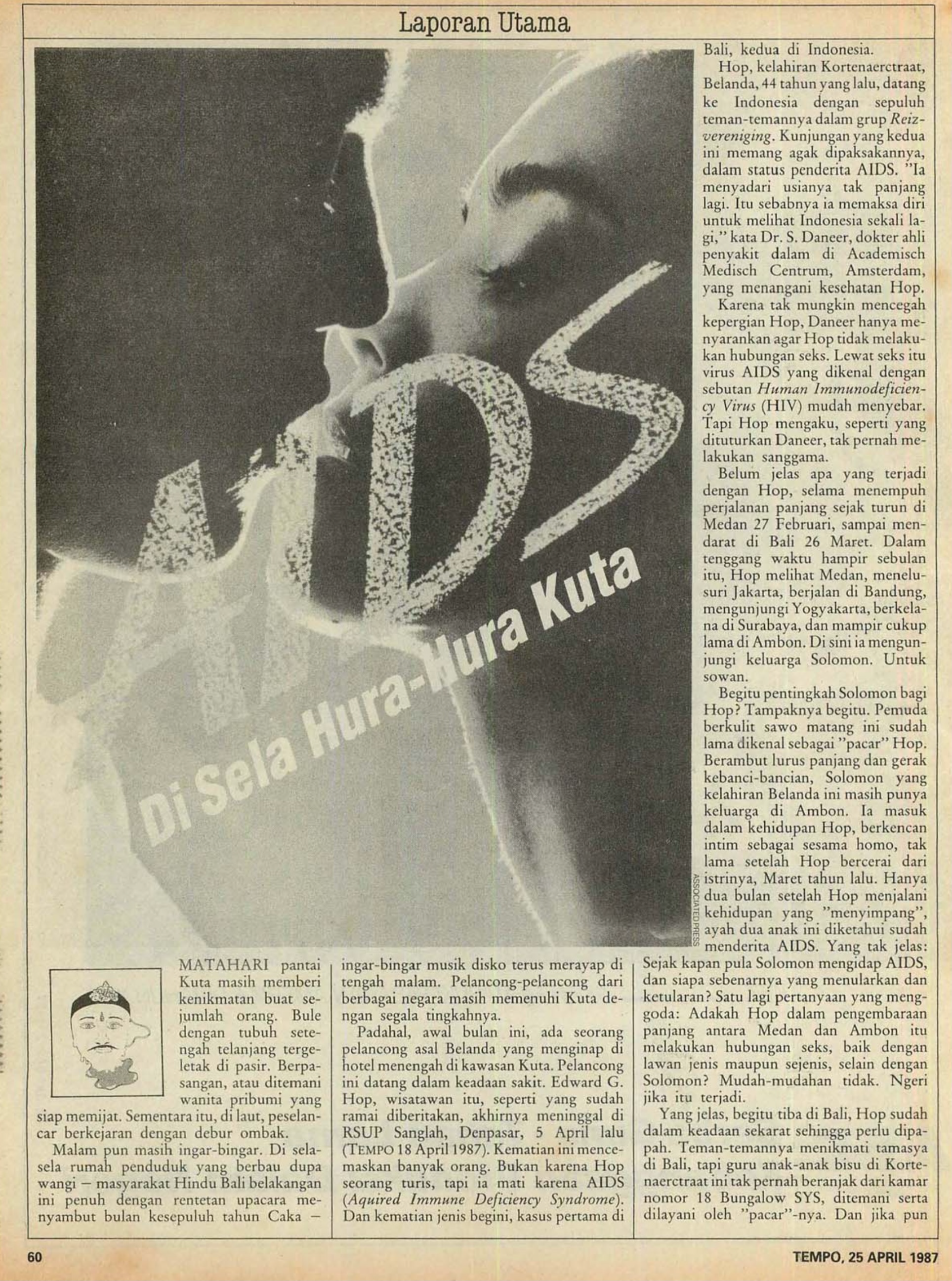 In the above article Tempo reports on what is possibly the first HIV related death in Indonesia - the death of a 25-year-old woman who had contracted HIV from blood transfusions due to her haemophilia. However, contrary to media reporting on HIV in relation to gay and waria communities, the case was underplayed and the death was never formally confirmed as HIV related by the Indonesian Health Department.