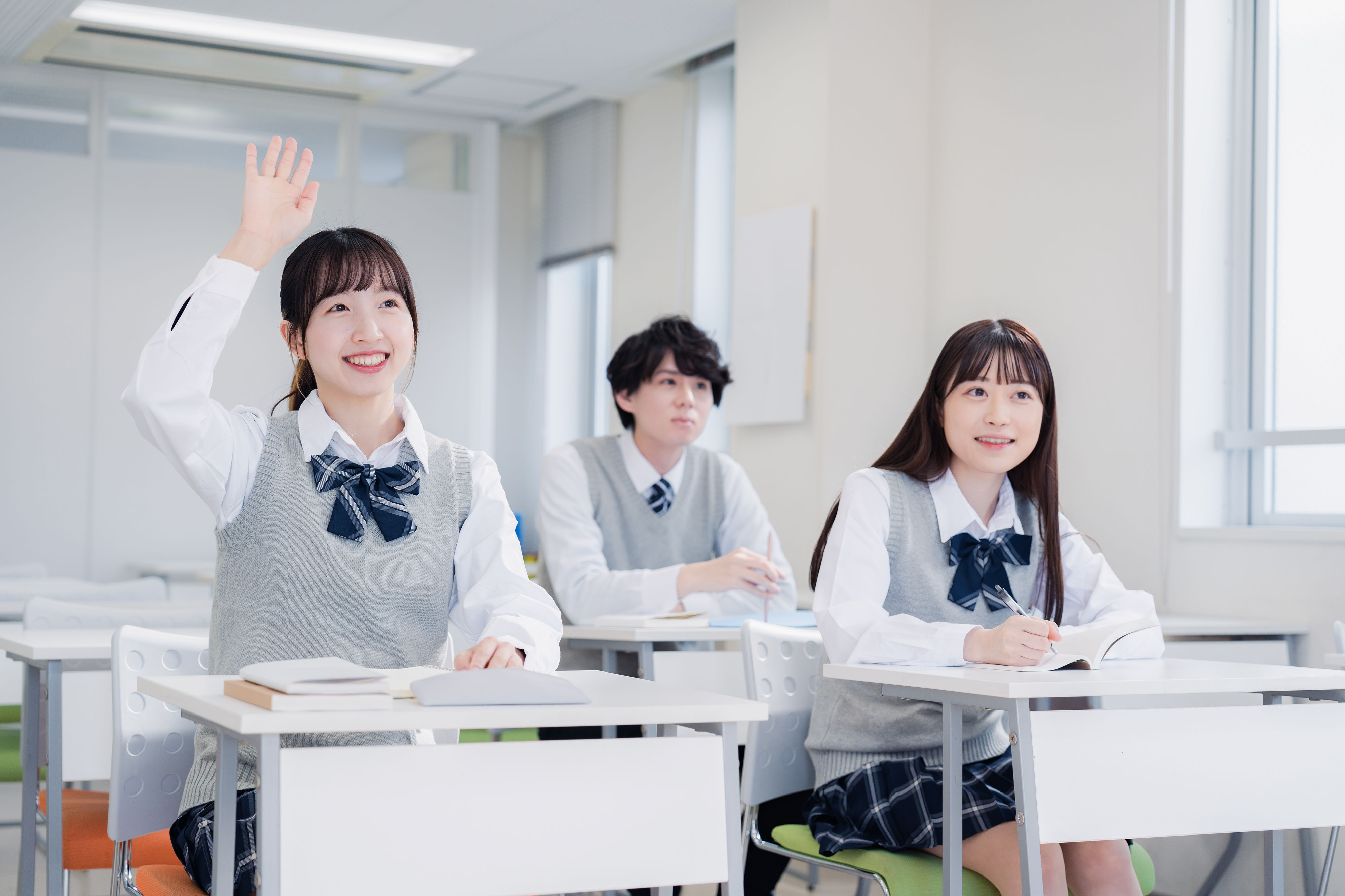 使用した画像の情報 : Drazen - "Rear view of teacher giving lecture to high school students in the classroom." • maroke - "授業中に手を挙げる女子高生" • jyapa - "大学での社会人講義のイメージ"