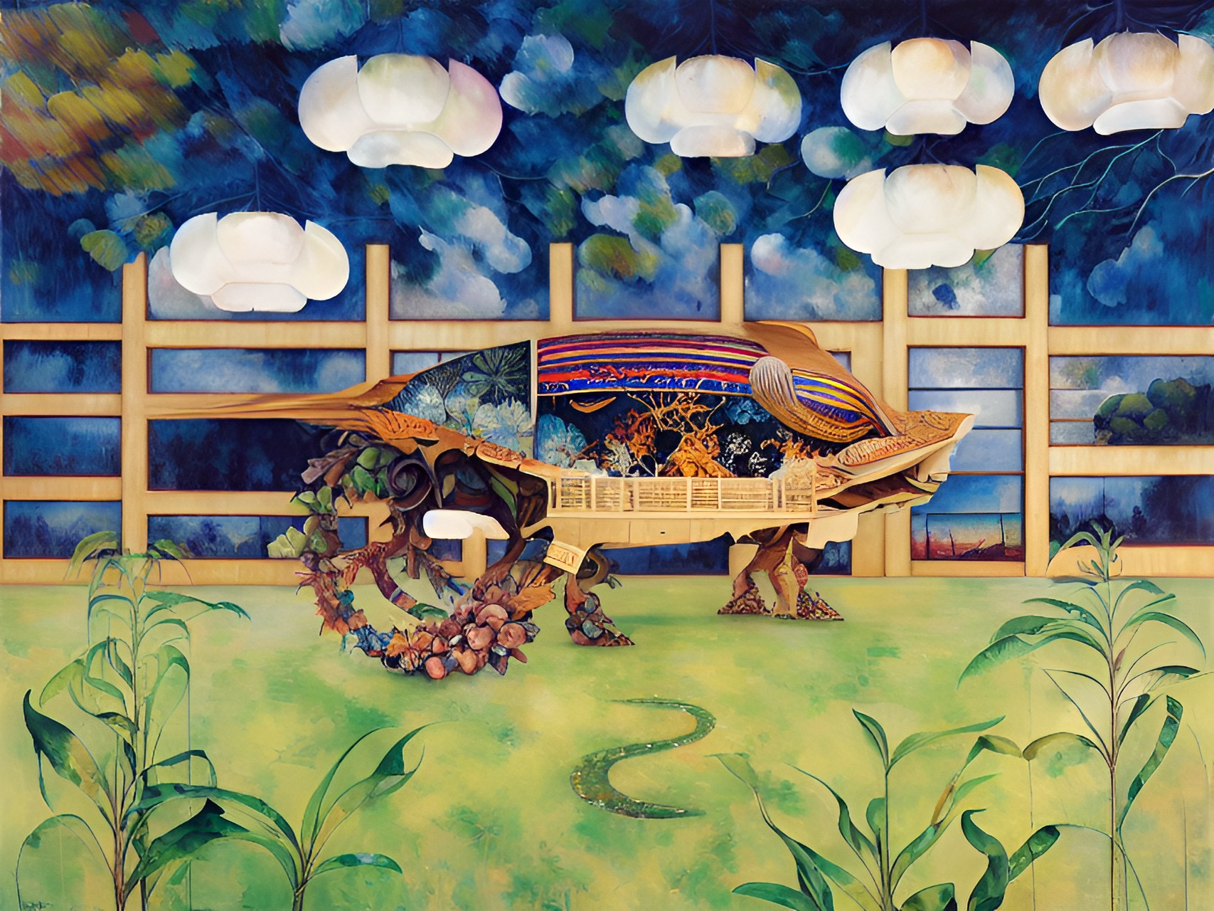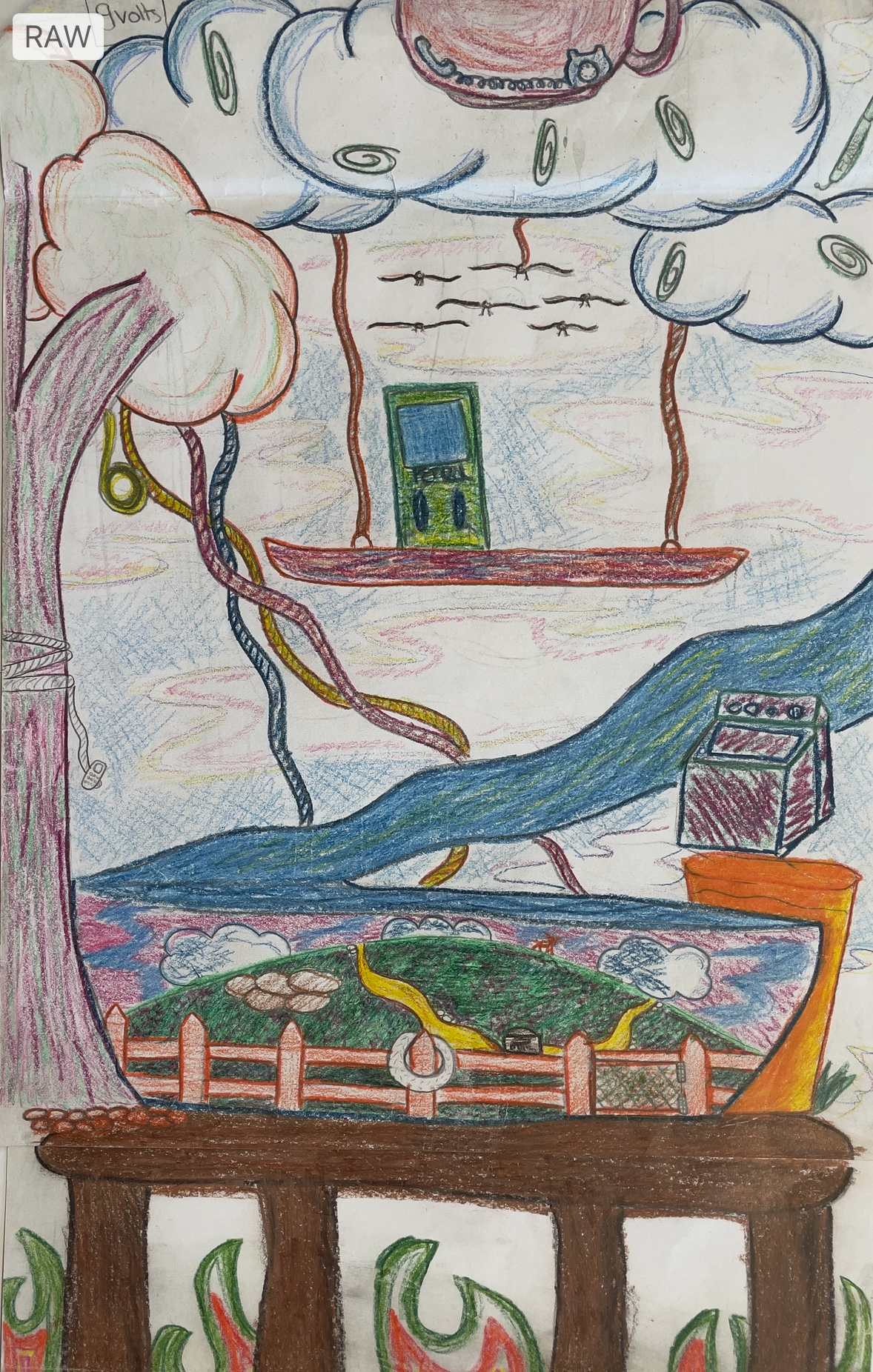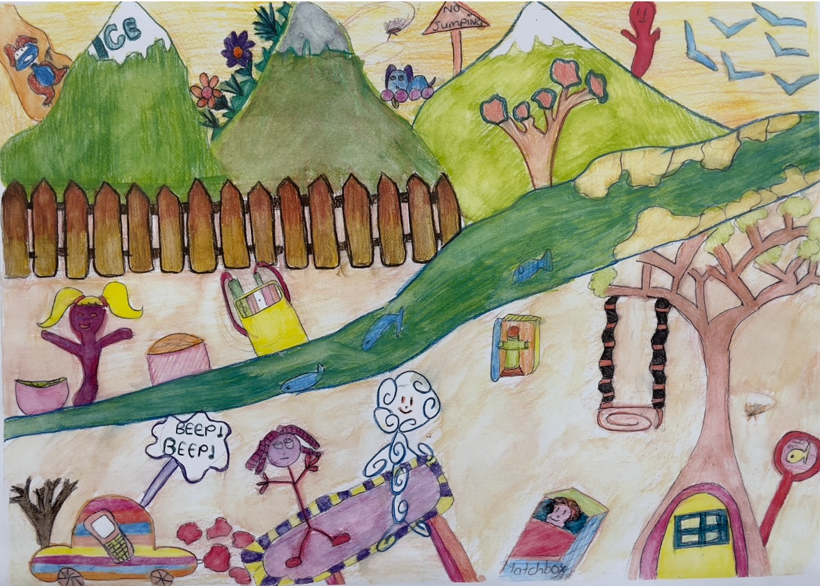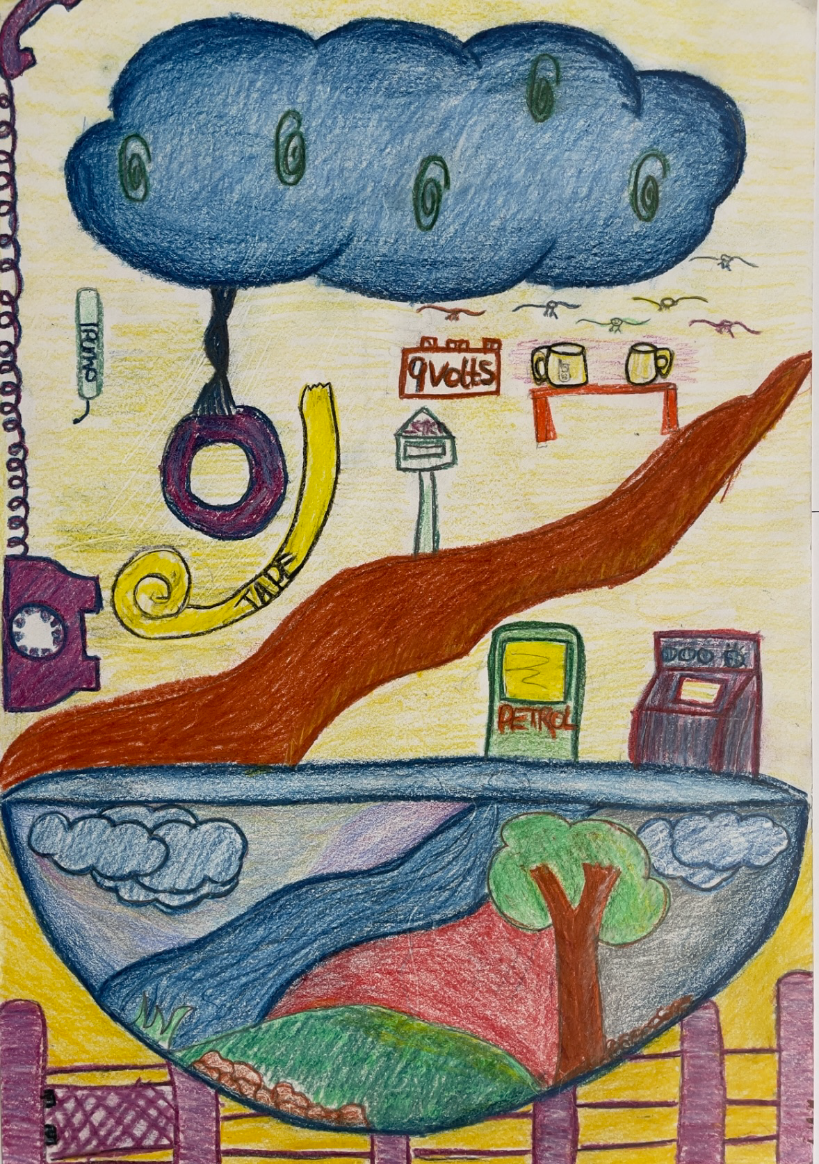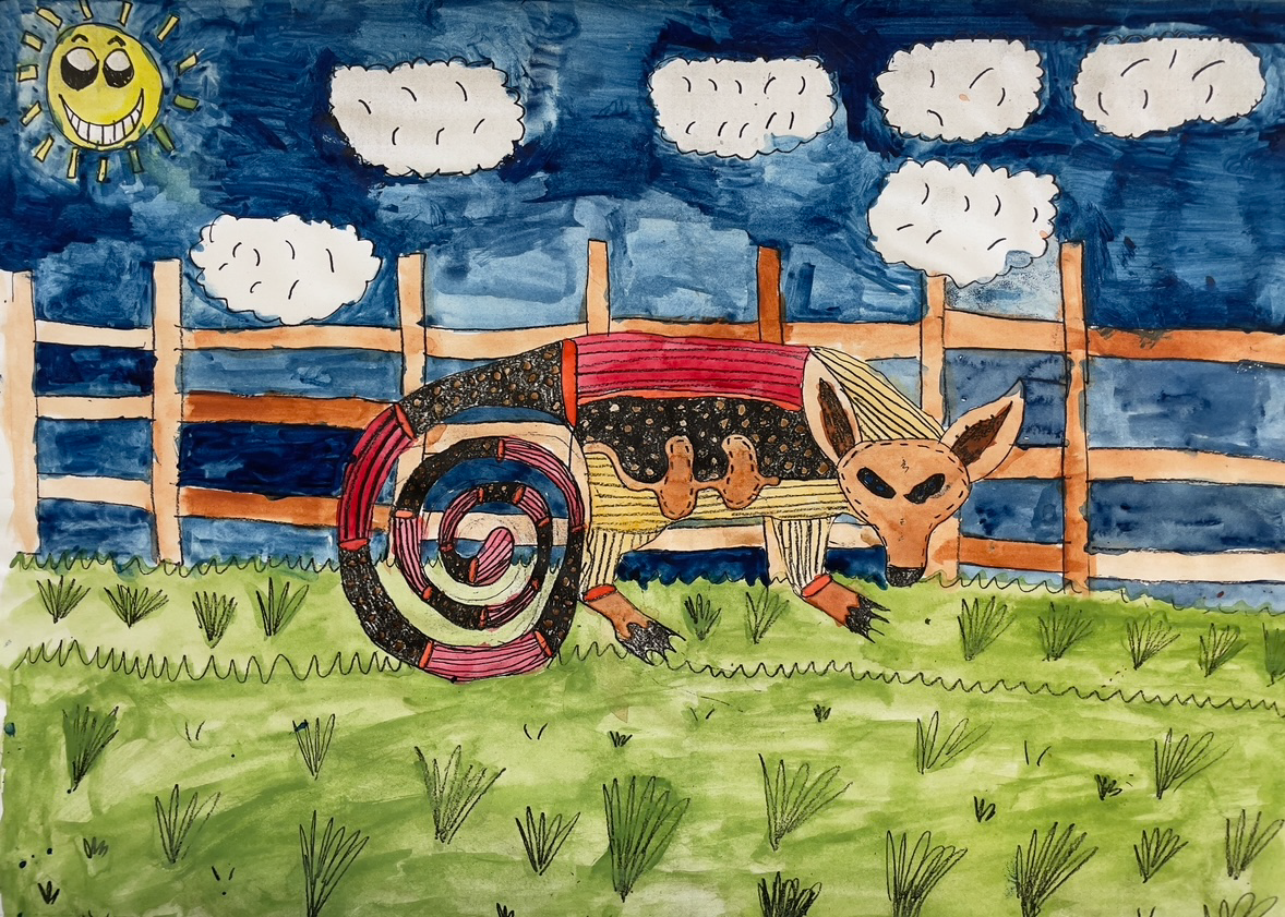 In the following series drawings from Year 7 students have been used as source material to generate output. I’ve kept the same settings as for the Linoblocks. In the below it’s a lot easier to see how the neural network preferences colour, shape and tone over line. The main features of each drawing are pretty well maintained and the txt prompts are used to fill in shapes and the background. Again these drawings are from students who would now be well into their mid thirties.
