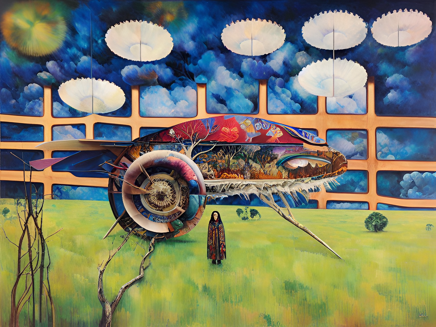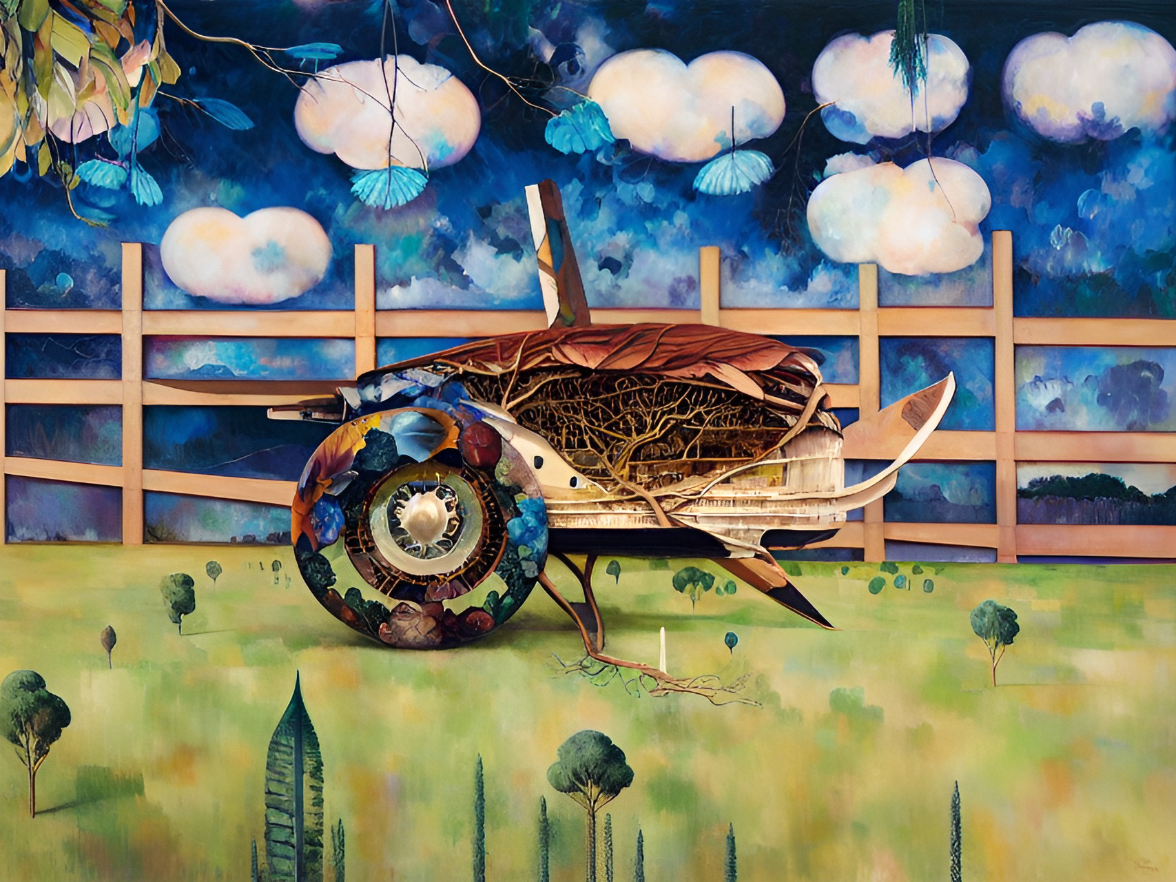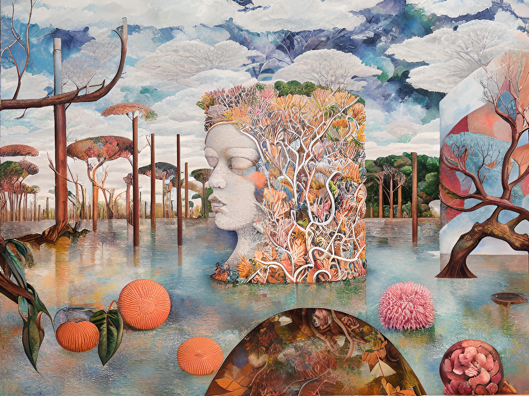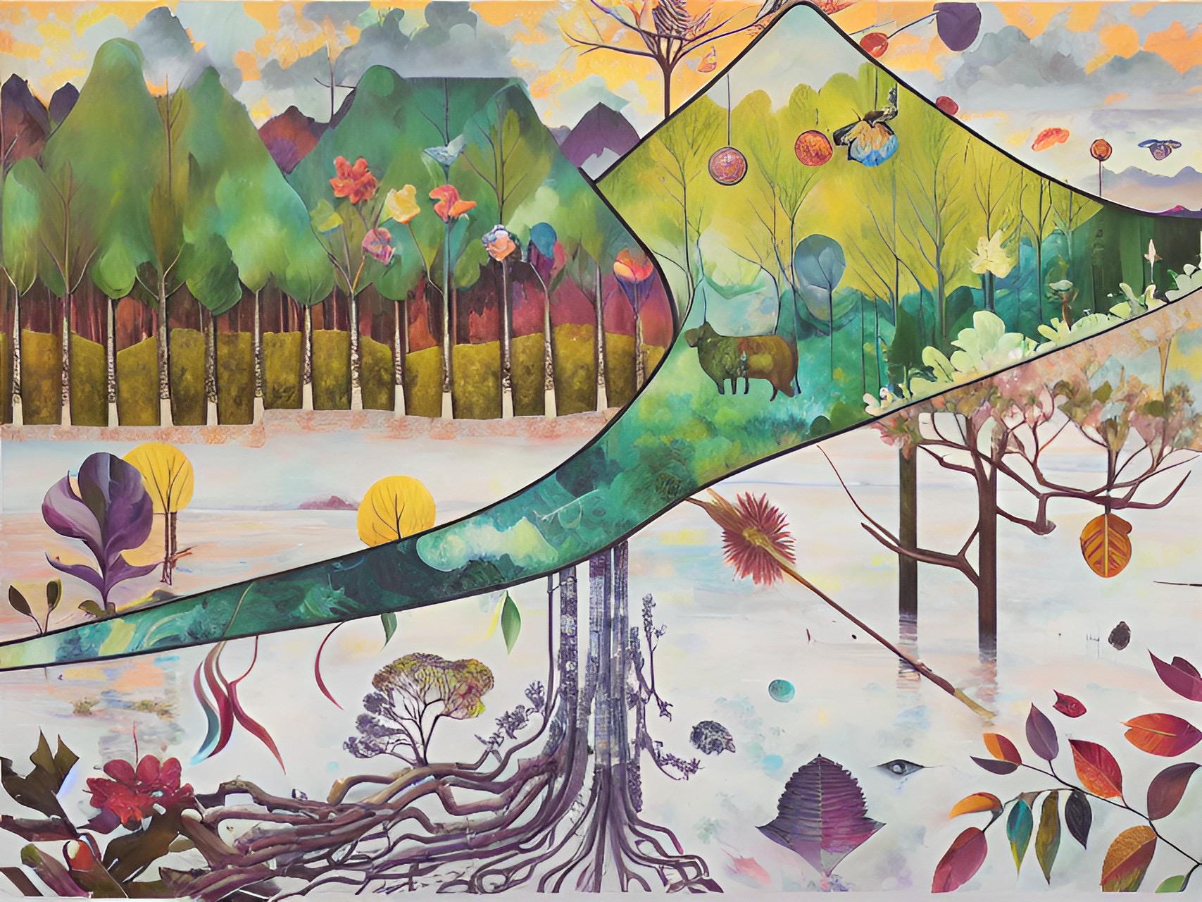 In the following series drawings from Year 7 students have been used as source material to generate output. I’ve kept the same settings as for the Linoblocks. In the below it’s a lot easier to see how the neural network preferences colour, shape and tone over line. The main features of each drawing are pretty well maintained and the txt prompts are used to fill in shapes and the background. Again these drawings are from students who would now be well into their mid thirties.