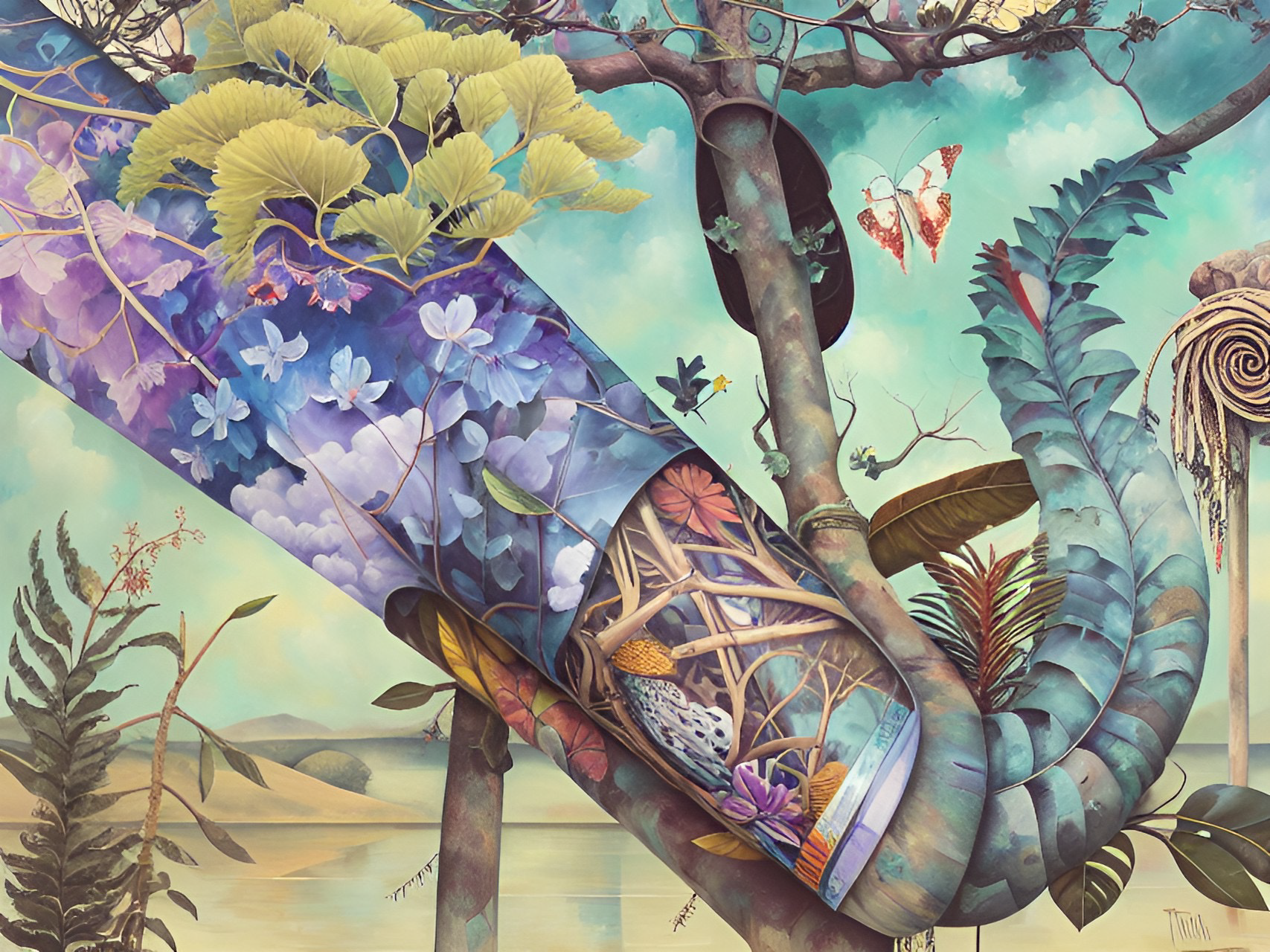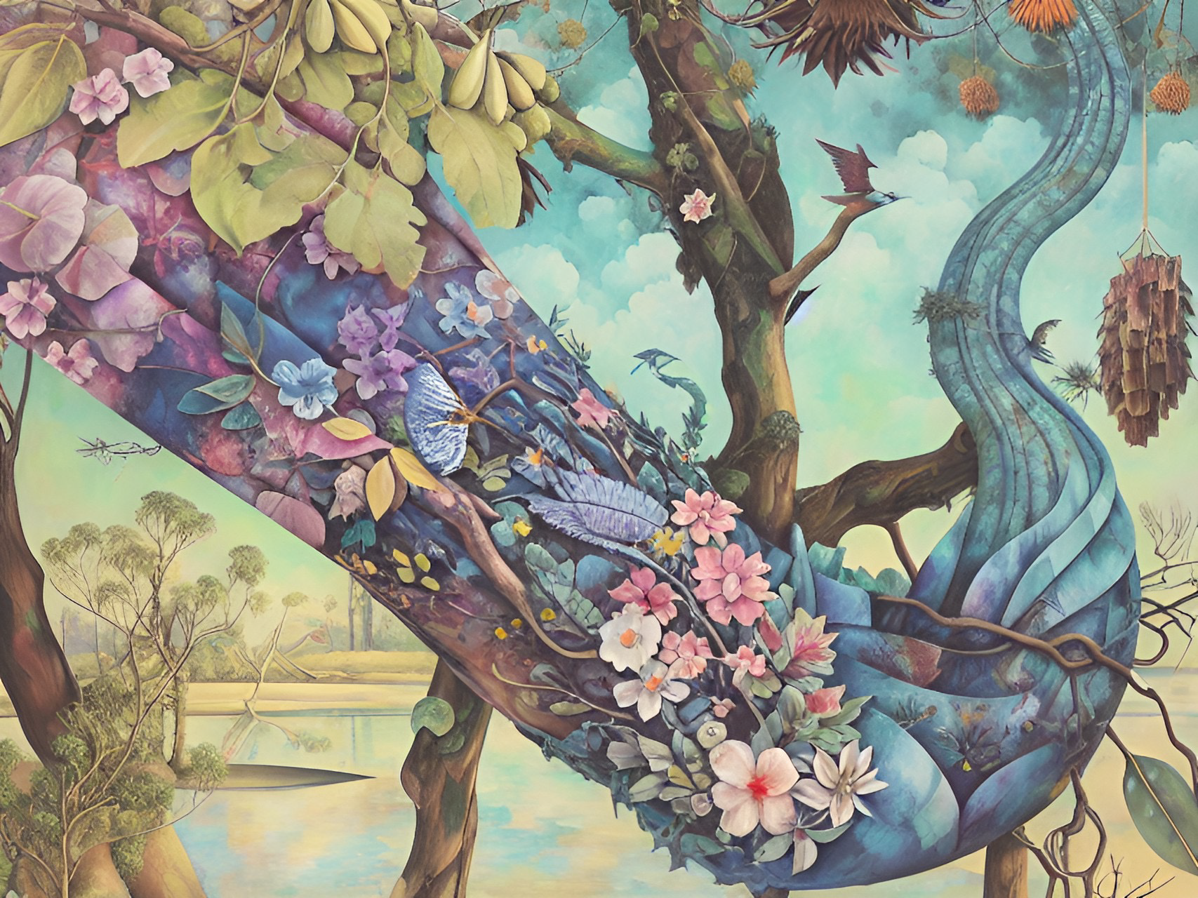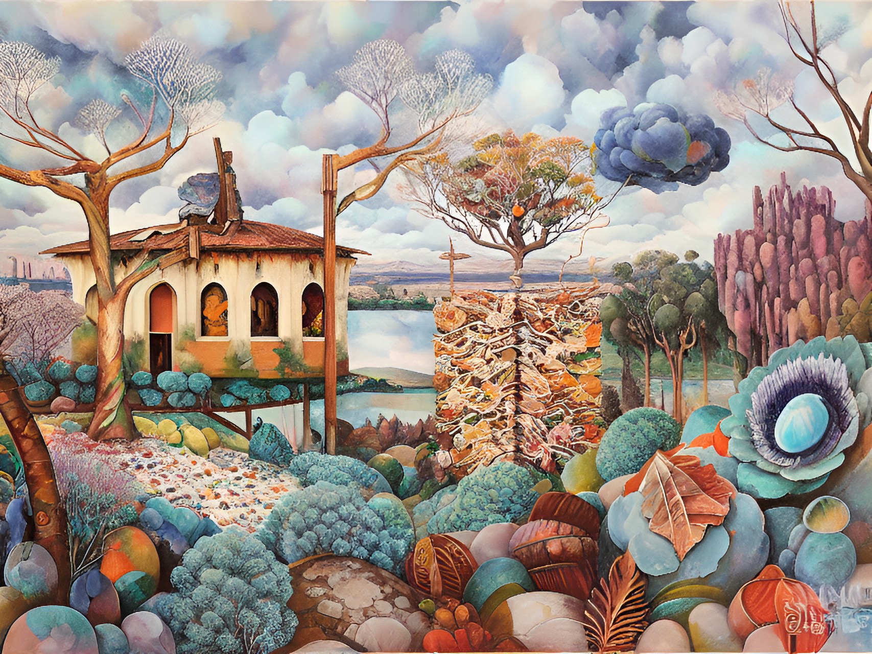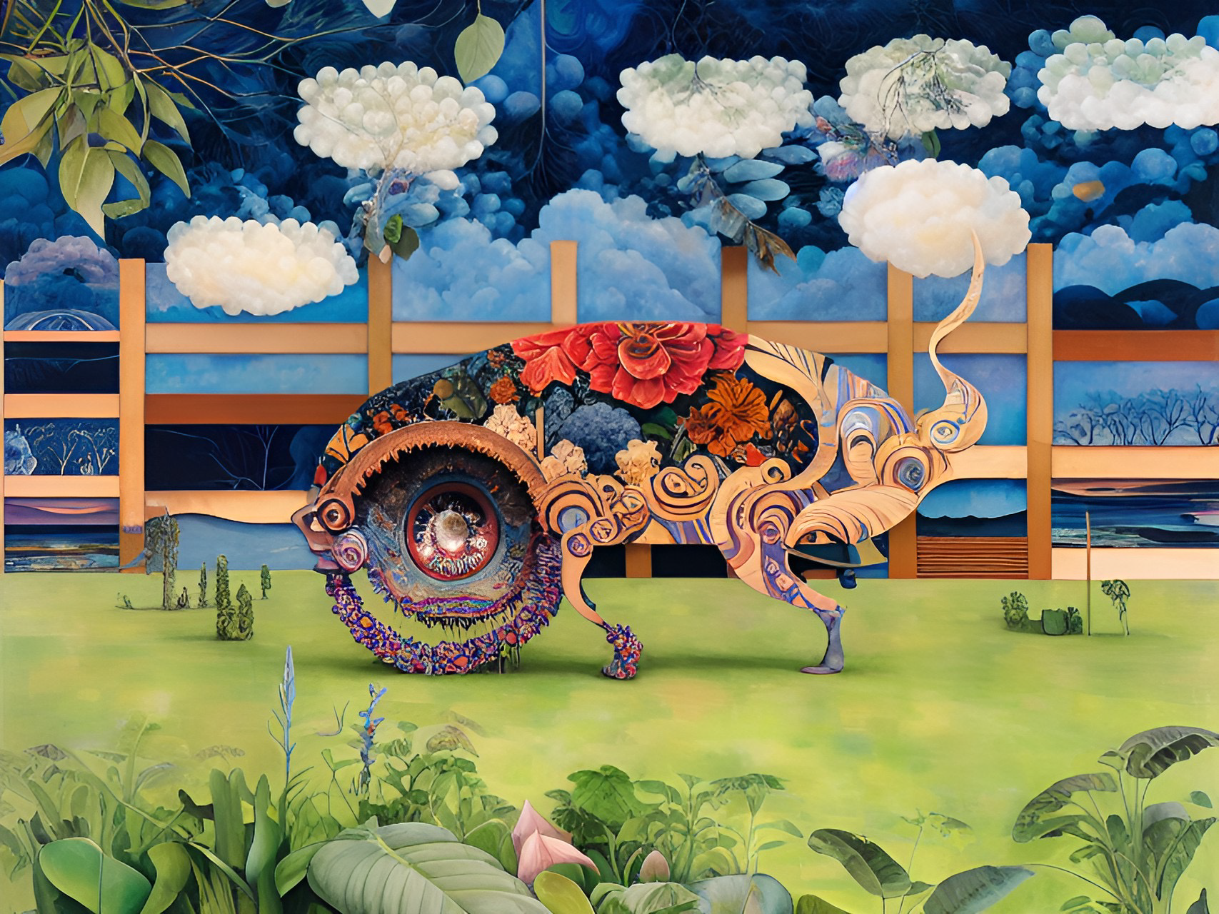 In the following series drawings from Year 7 students have been used as source material to generate output. I’ve kept the same settings as for the Linoblocks. In the below it’s a lot easier to see how the neural network preferences colour, shape and tone over line. The main features of each drawing are pretty well maintained and the txt prompts are used to fill in shapes and the background. Again these drawings are from students who would now be well into their mid thirties.