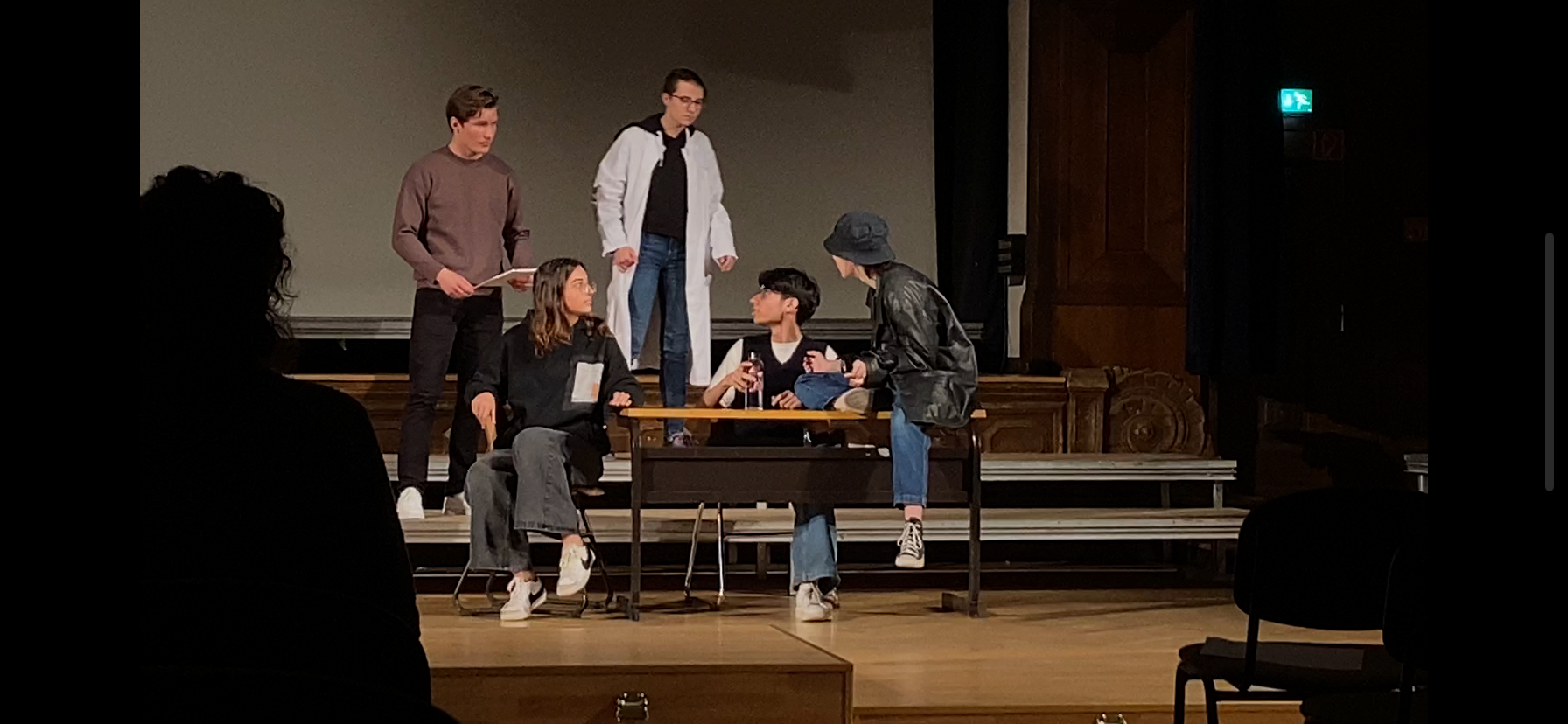 Through equitable participation of all members and team-based work, the students came up with an original concept for a new play including aspects of the previously presented books. Students collaborated to come up with ideas to combine the individually prepared material.