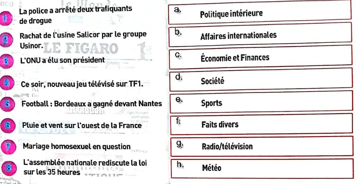 - Associe ces titres d'articles de journaux avec la bonne rubrique.