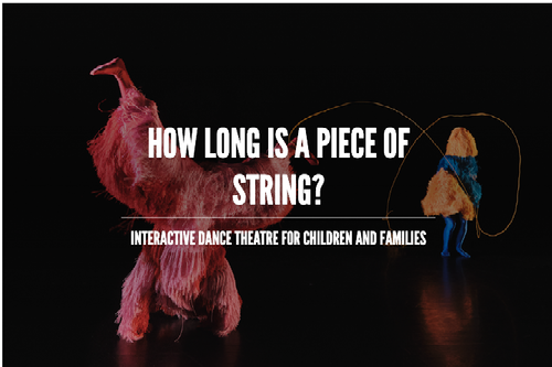 How Long Is a Piece of String? is an interactive dance theatre work for children and families. Using midi controllers to allows audiences to contribute to the score live through touch. The work explores concepts of touch, friendship, and closeness. The two performers are costumed as String and Strong, characters who speak in a gibberish language and whose bodies (including faces and eyes) are covered in fringing. Only their hands, the place where they first connect to form their friendship, are recognizably human.