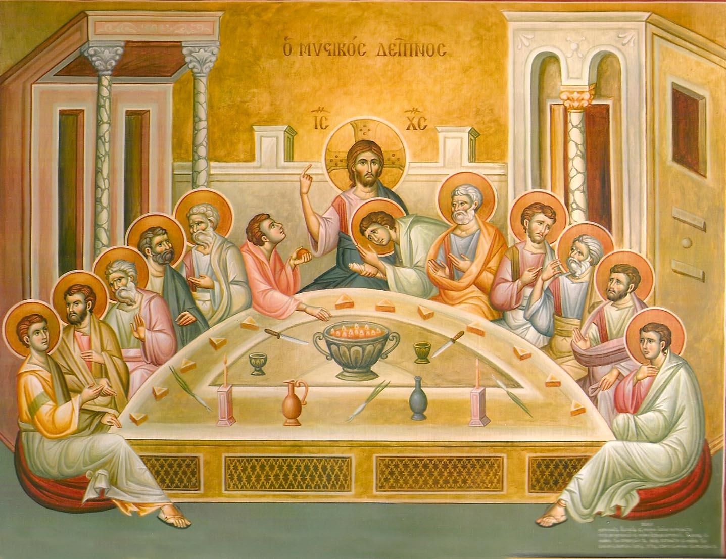 In the Orthros of Holy Thursday, celebrated on Holy Wednesday evening, the Church remembers the washing of the disciples’ feet, the institution of the Holy Eucharist, the Prayer of Christ at the Last Supper as recorded in the Gospel of John, and the betrayal.