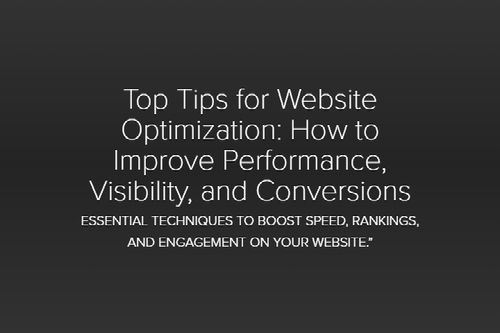 Top Tips for Website Optimization: How to Improve Performance, Visibility, and Conversions Essential Techniques to Boost Speed, Rankings, and Engagement on Your Website.”