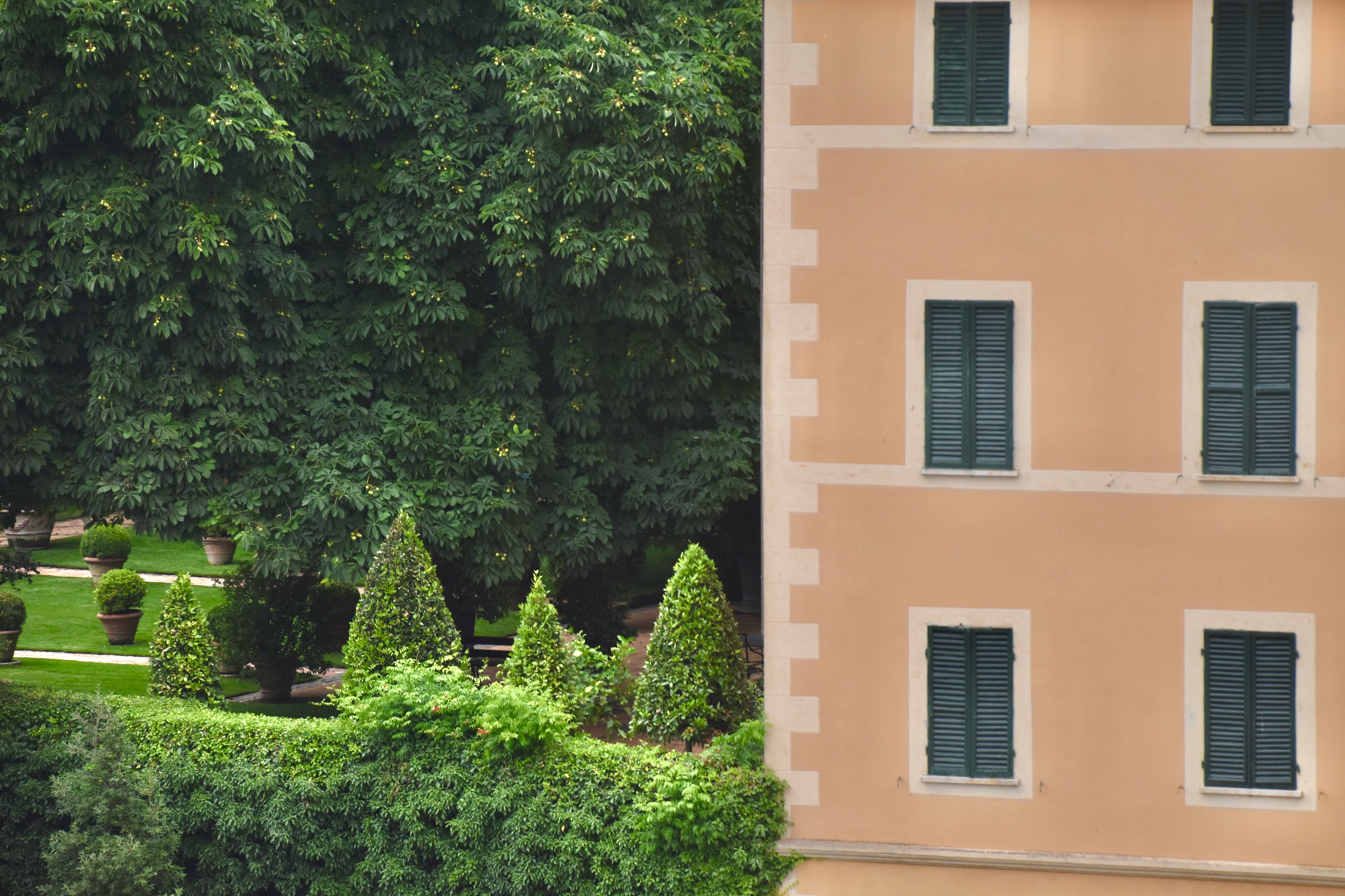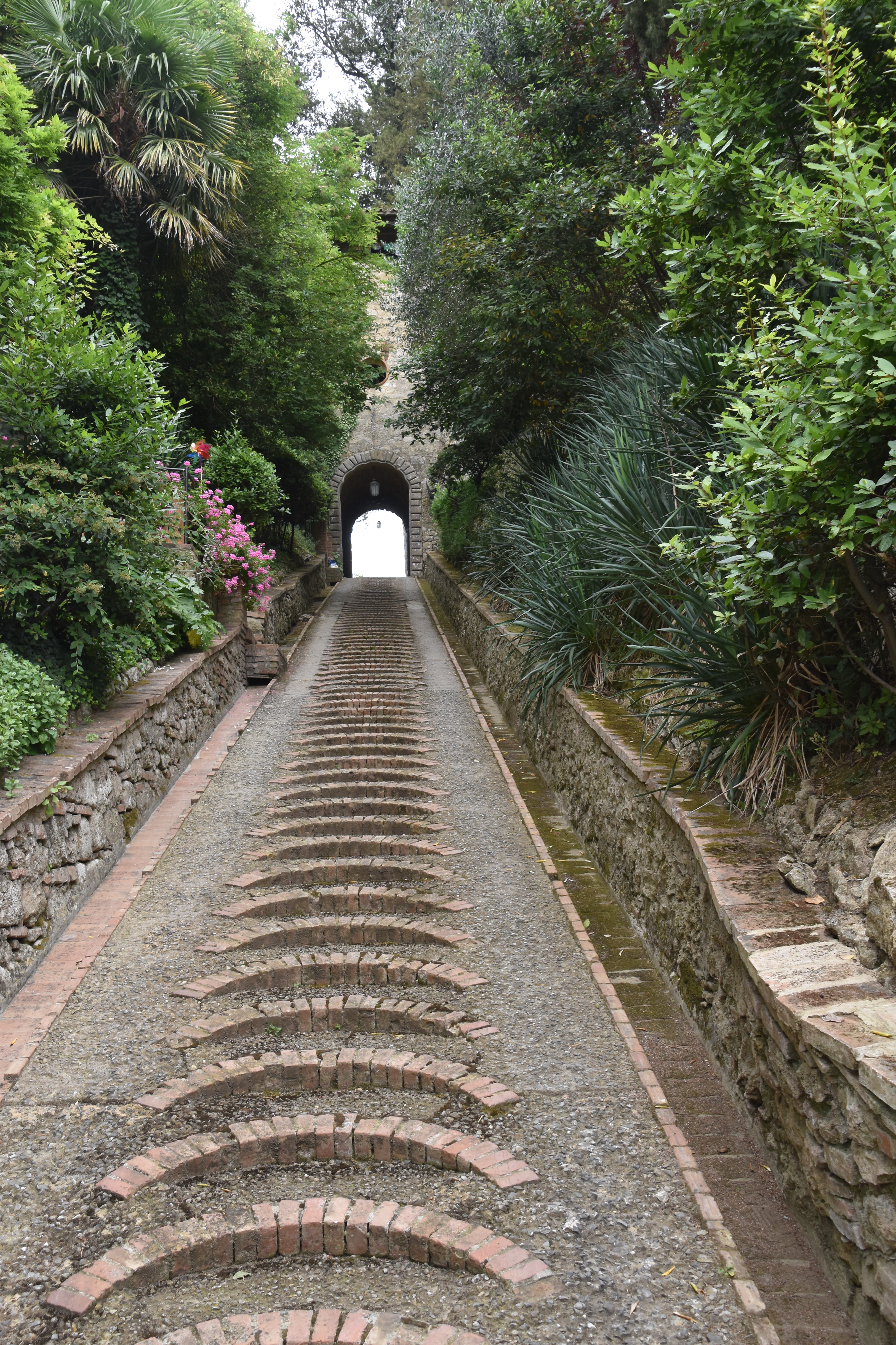 Escaliers menant à un château privé, belle demeures bien arborées, topiaires, jardins de plantes aromatiques, une grande place où se tient le marché le samedi, font de Cetona un endroit paisible pour une agréable promenade.