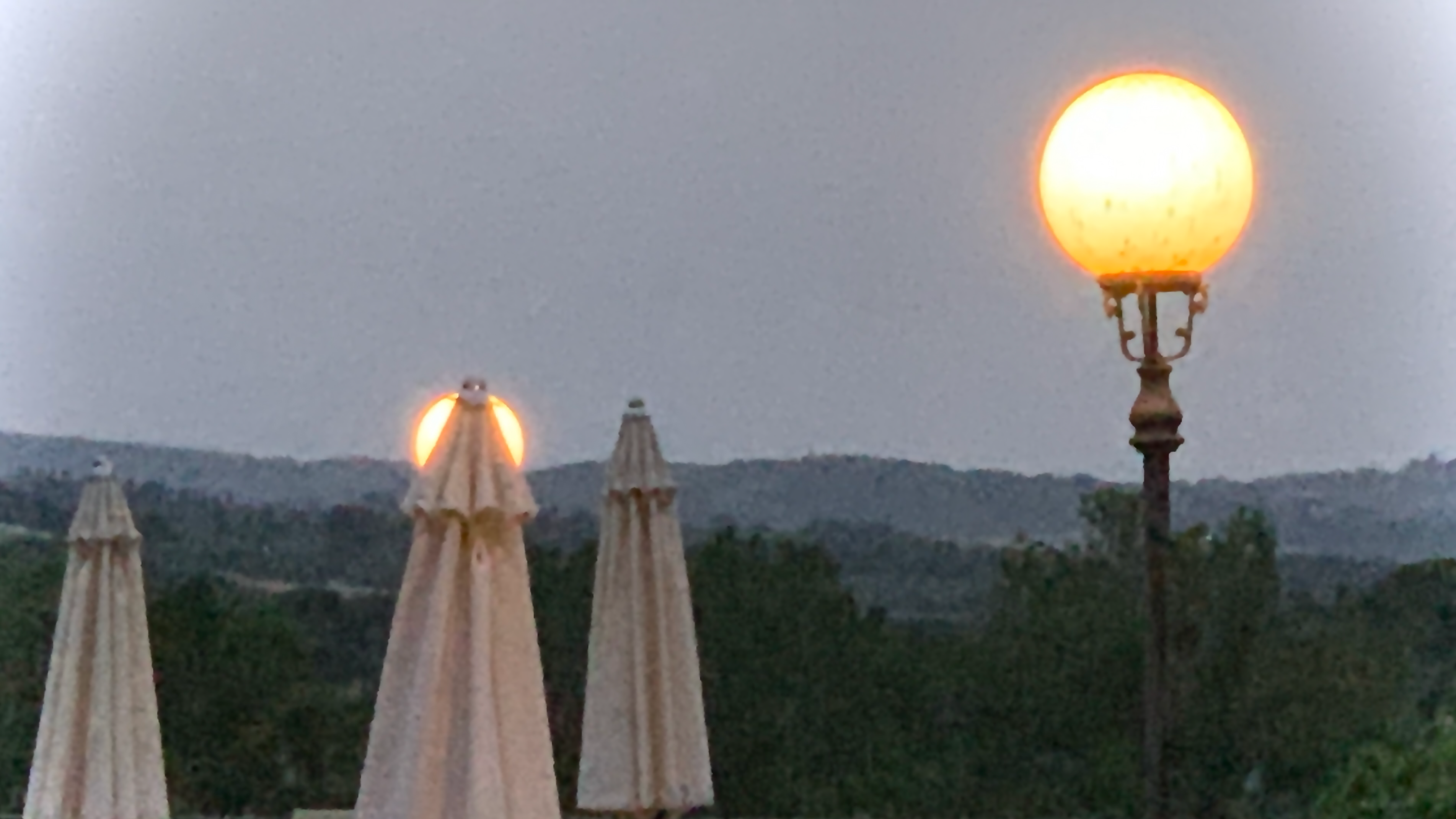 Le soleil se couche, les lumières du domaine s’allument, c’est l’heure du repas.