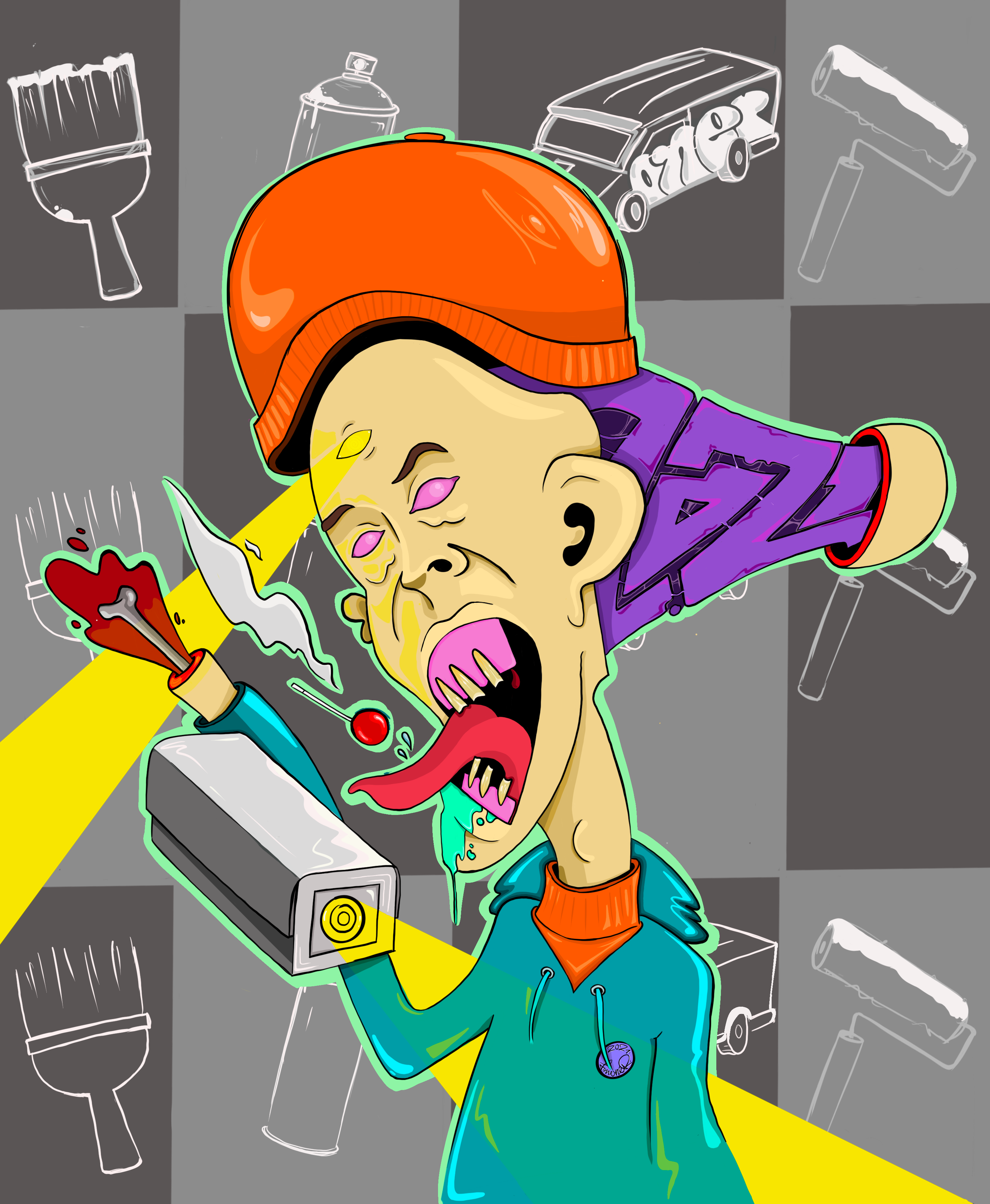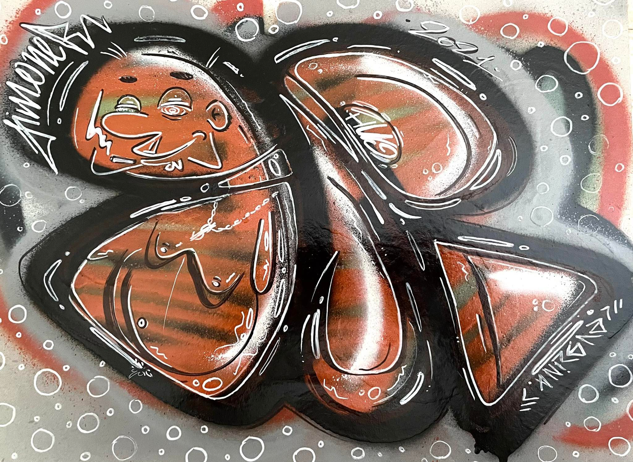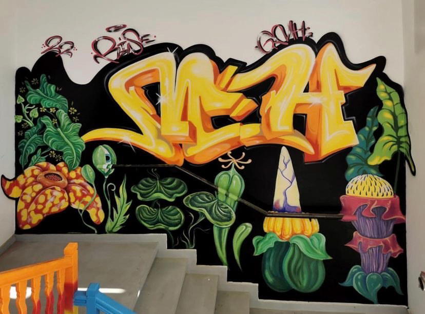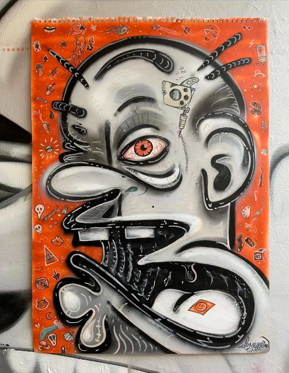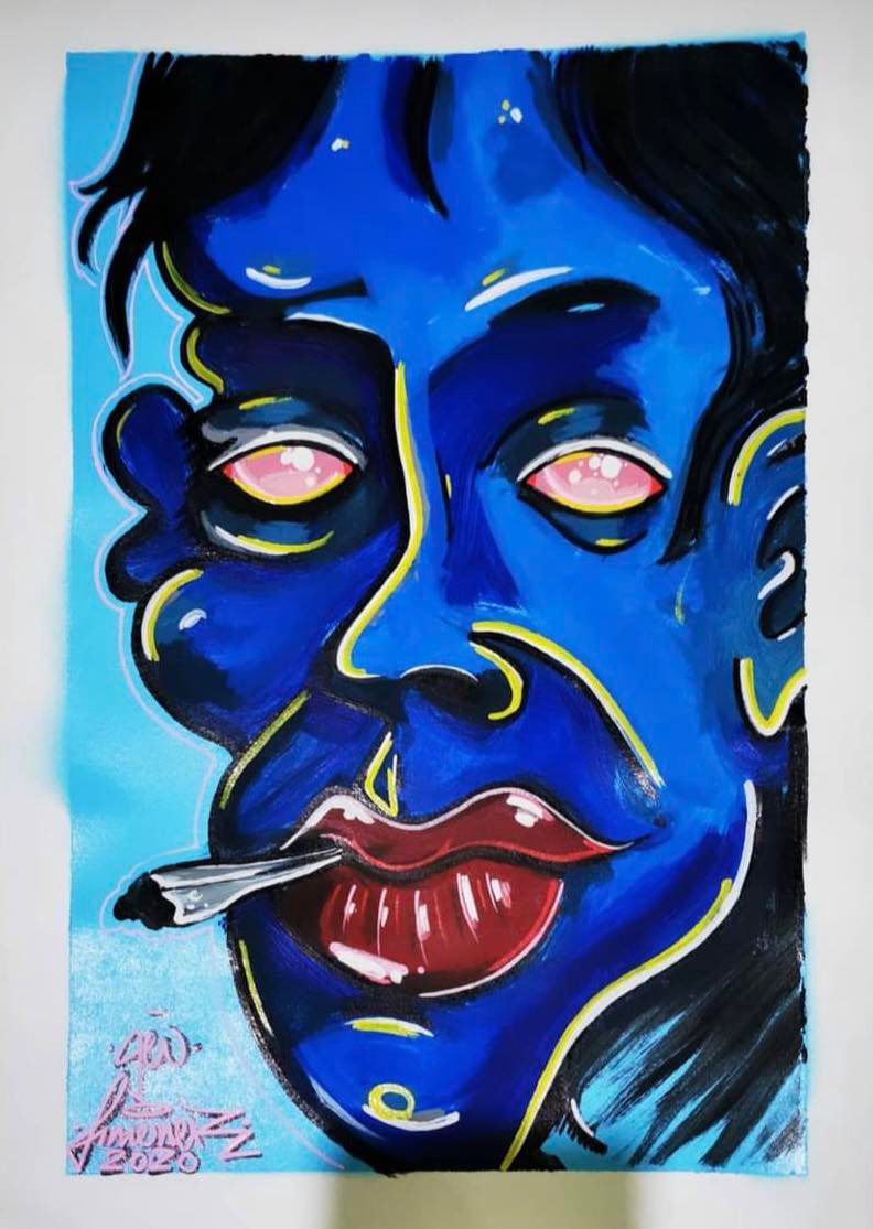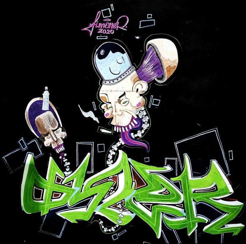 Originally a graffiti artist, with funky and colorful, characters, letterings and tags, who currently works with different techniques, on how to combine various mediums and textures onto different surfaces.