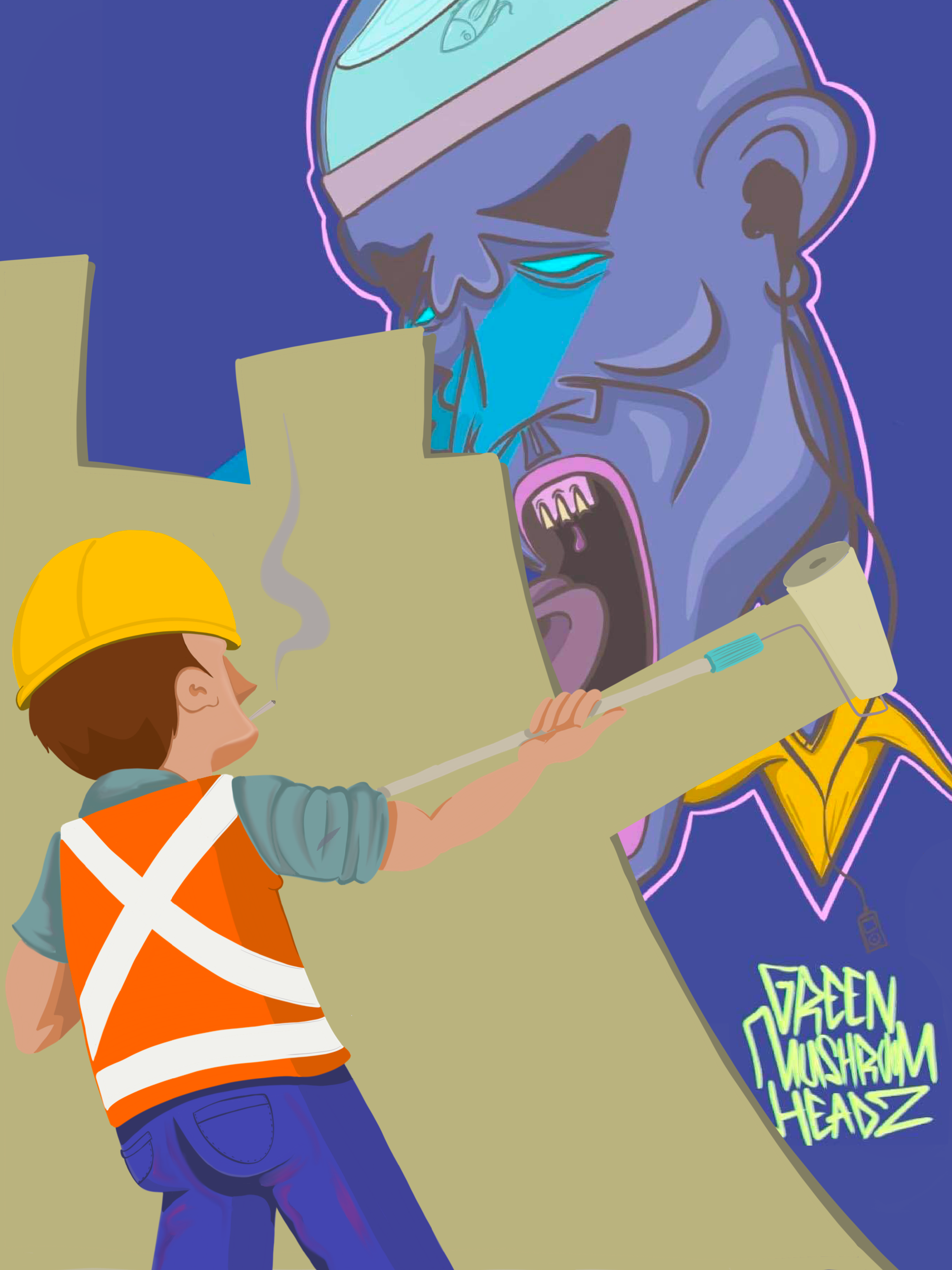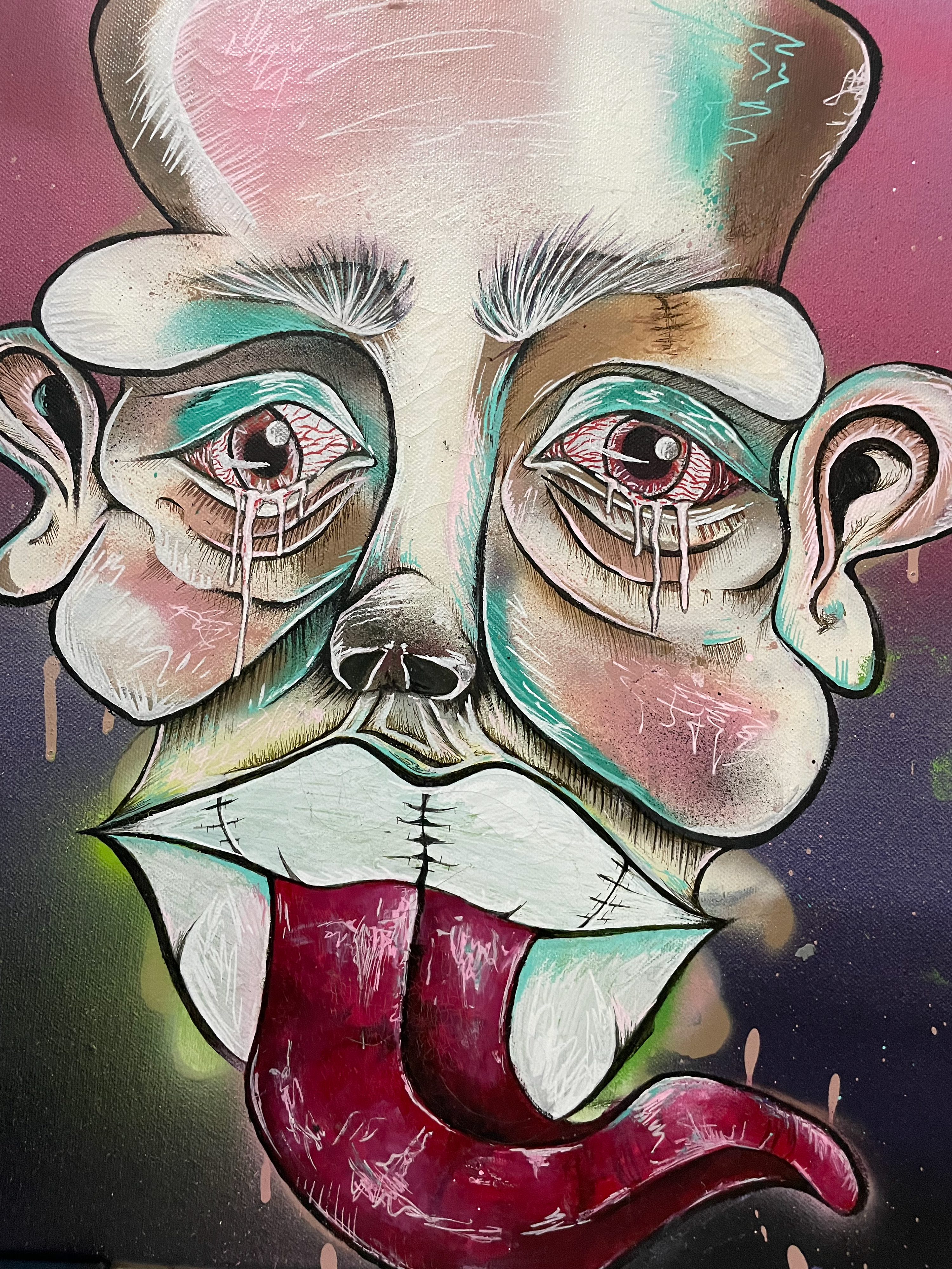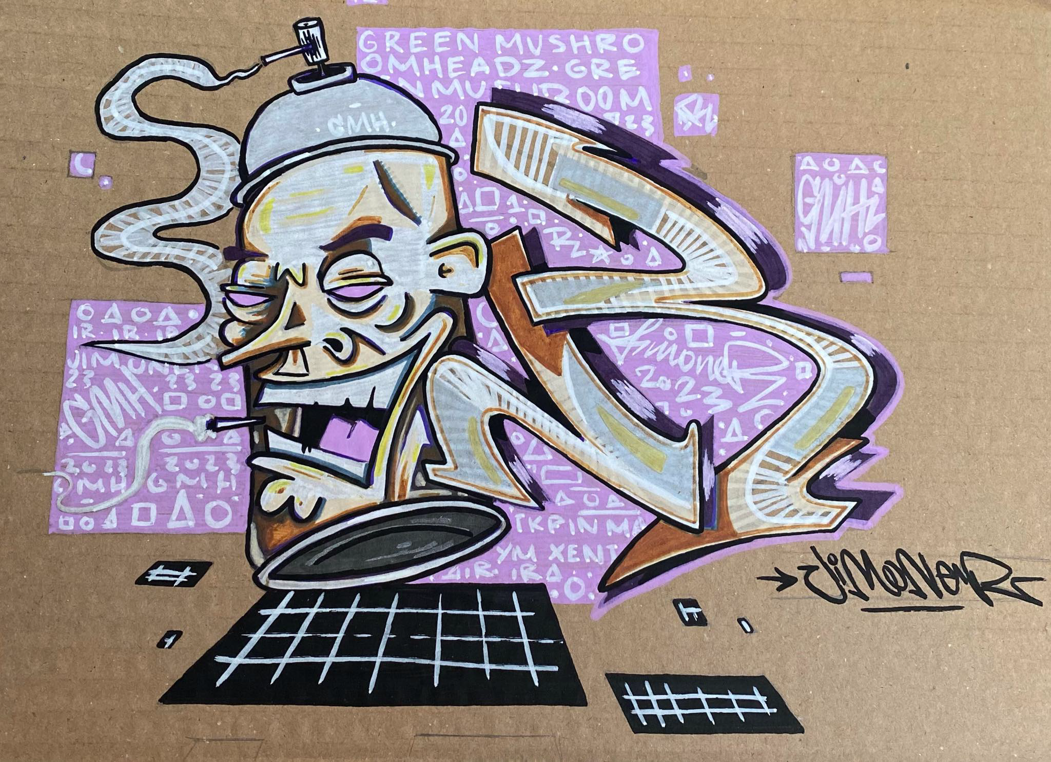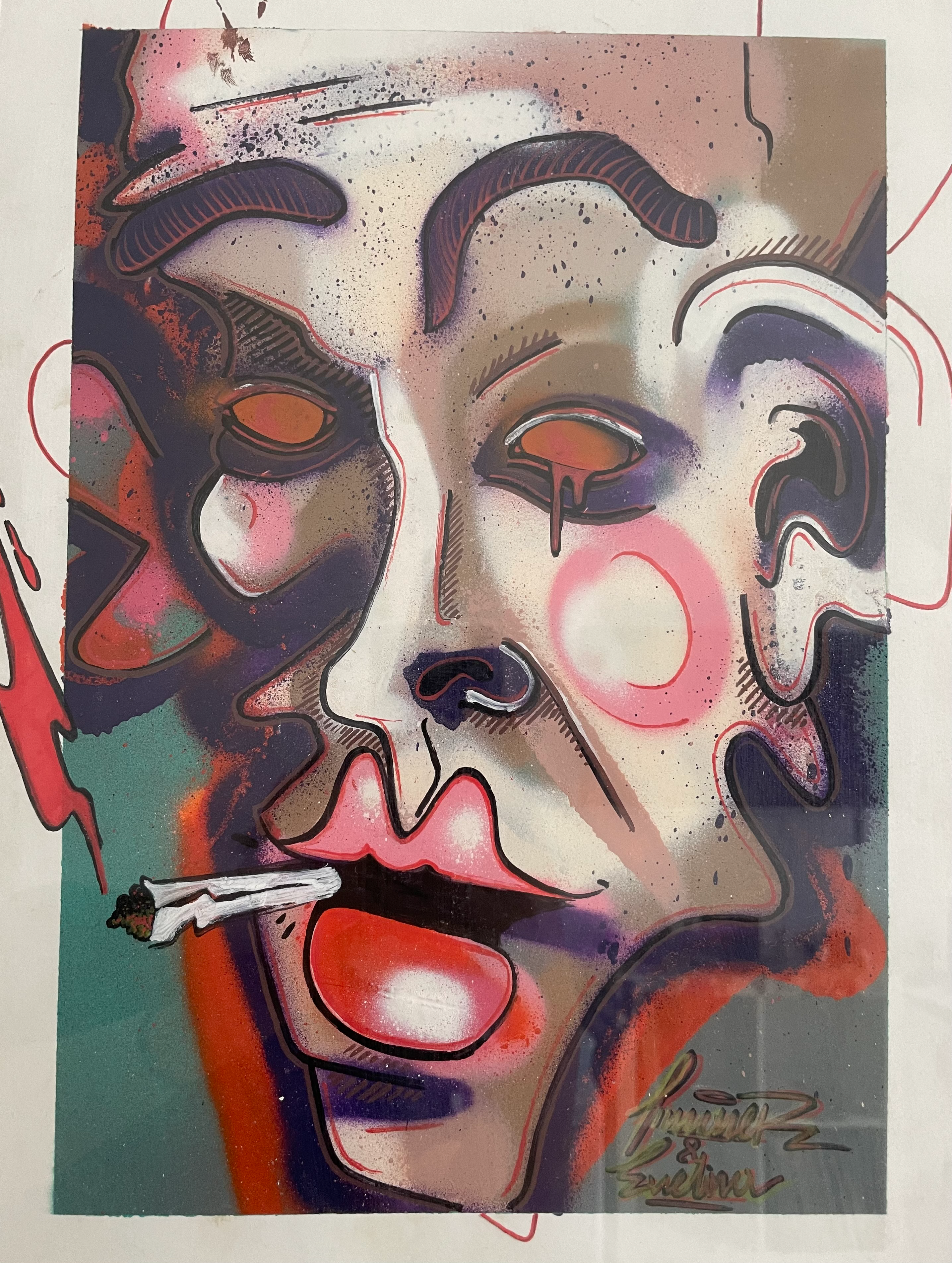 Originally a graffiti artist, with funky and colorful, characters, letterings and tags, who currently works with different techniques, on how to combine various mediums and textures onto different surfaces.