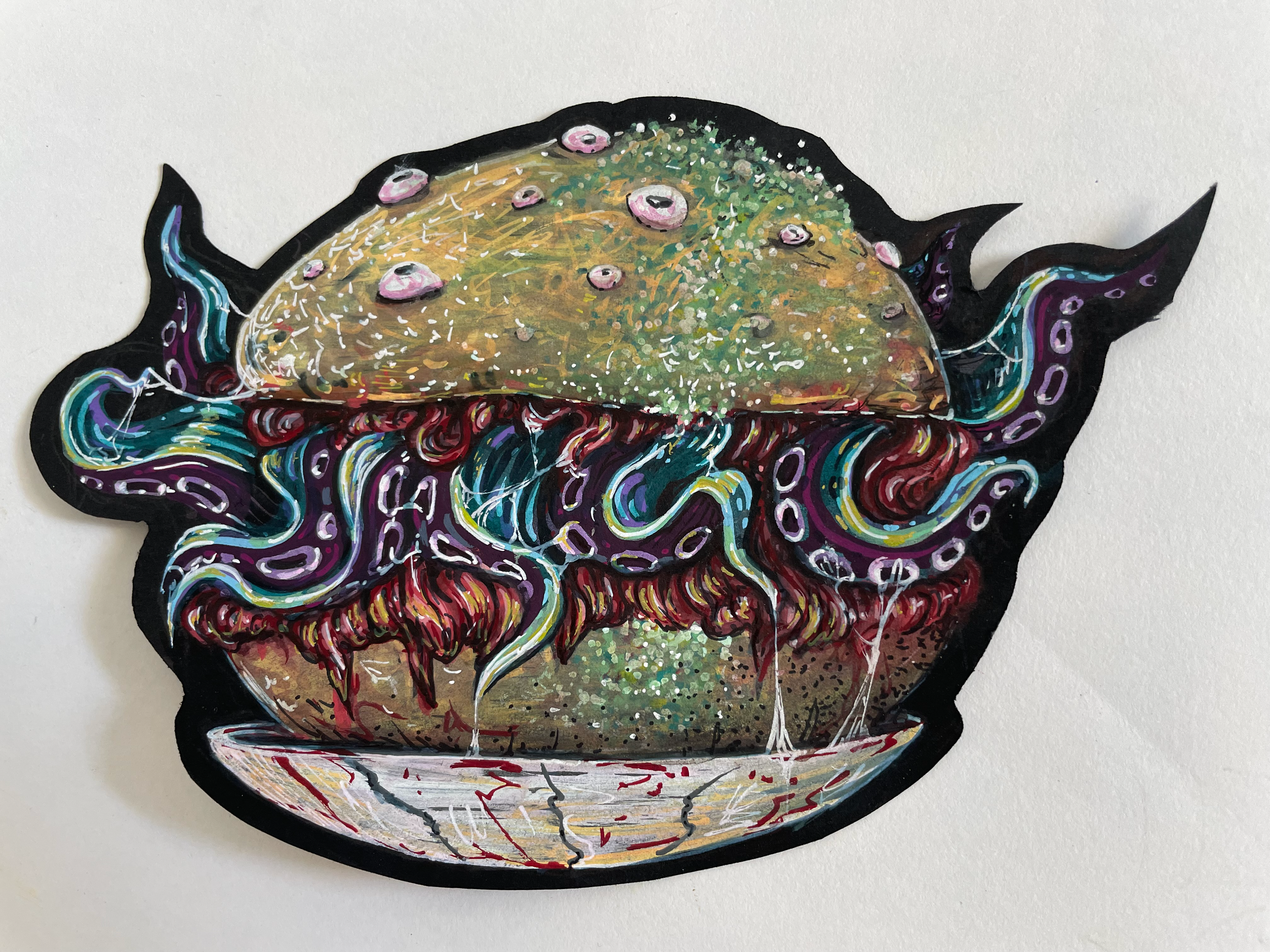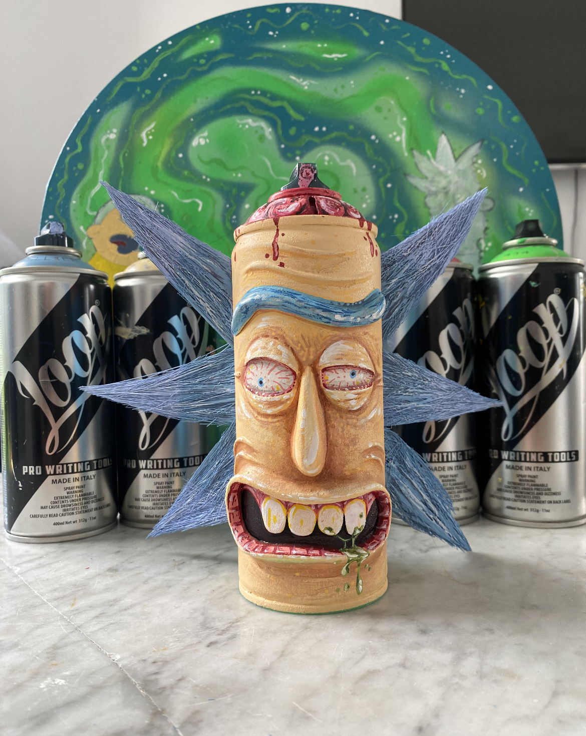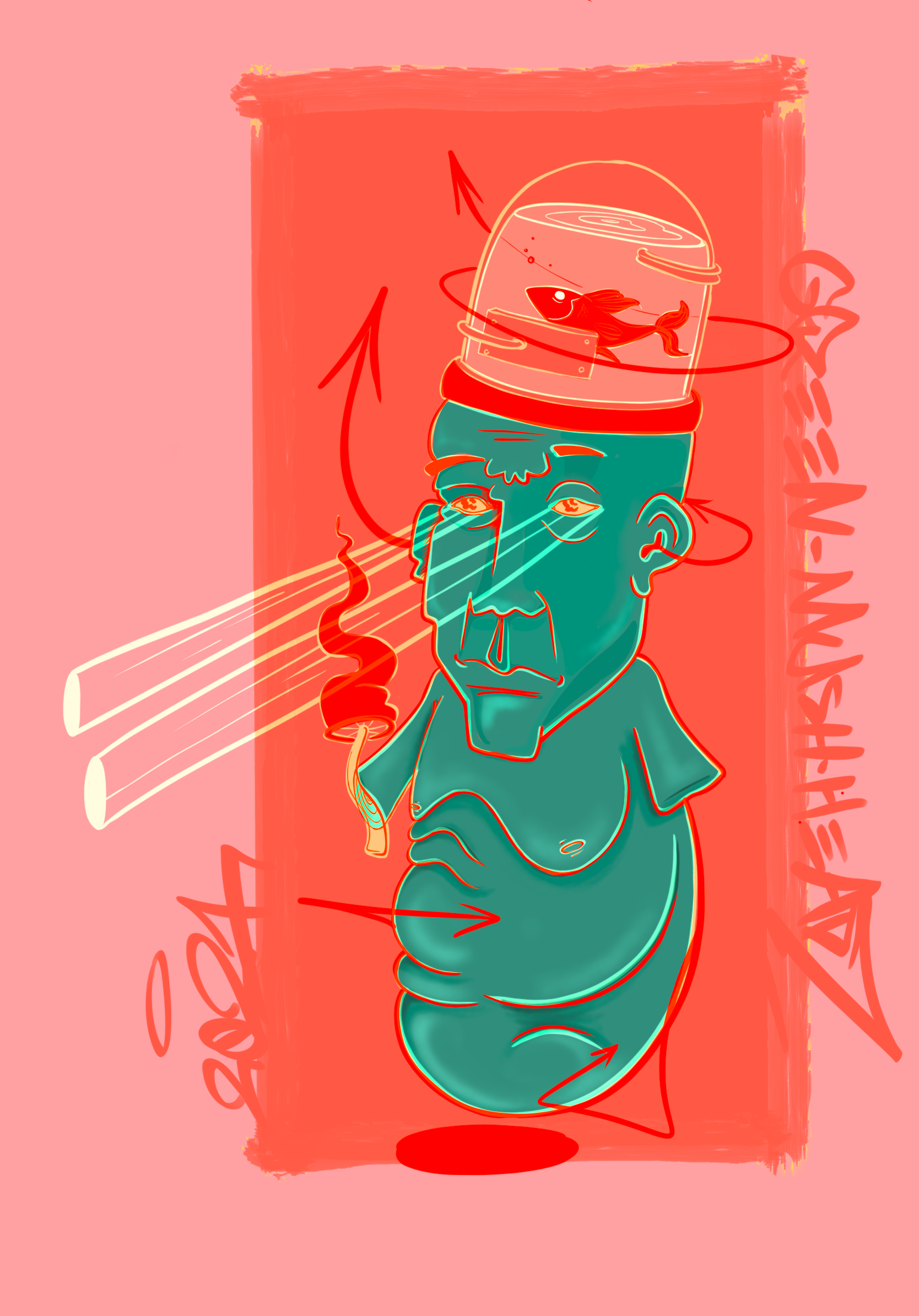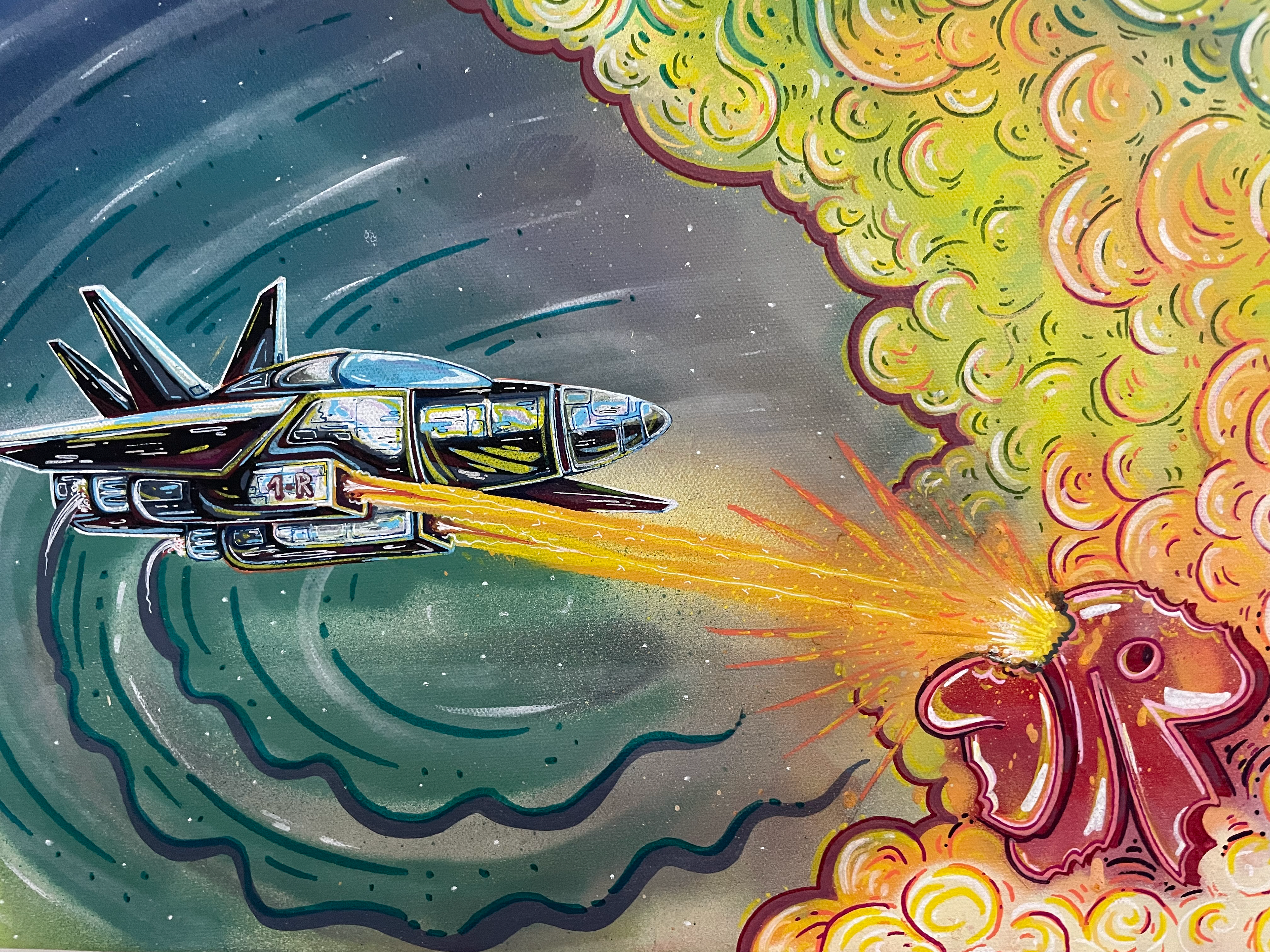 Originally a graffiti artist, with funky and colorful, characters, letterings and tags, who currently works with different techniques, on how to combine various mediums and textures onto different surfaces.