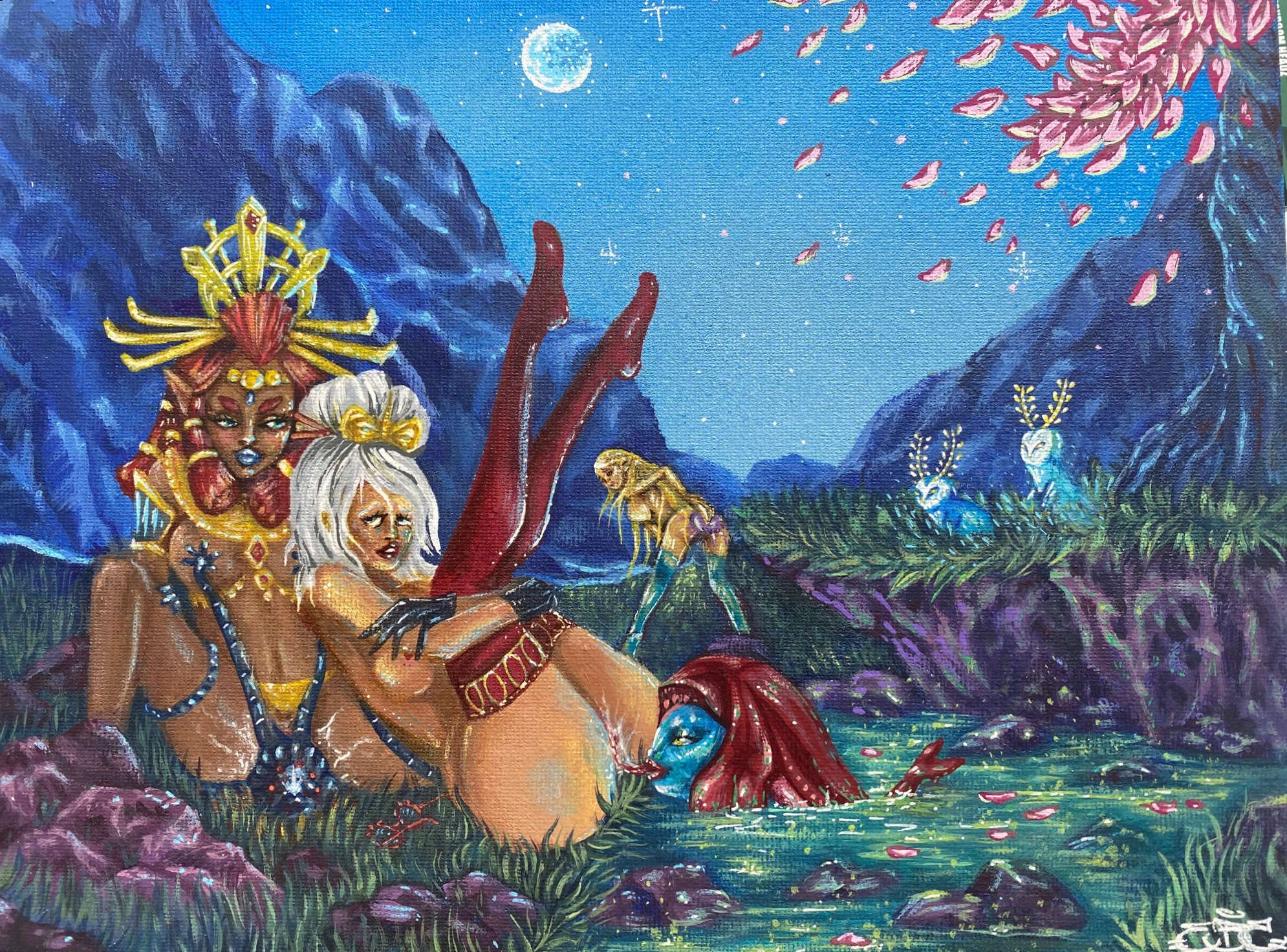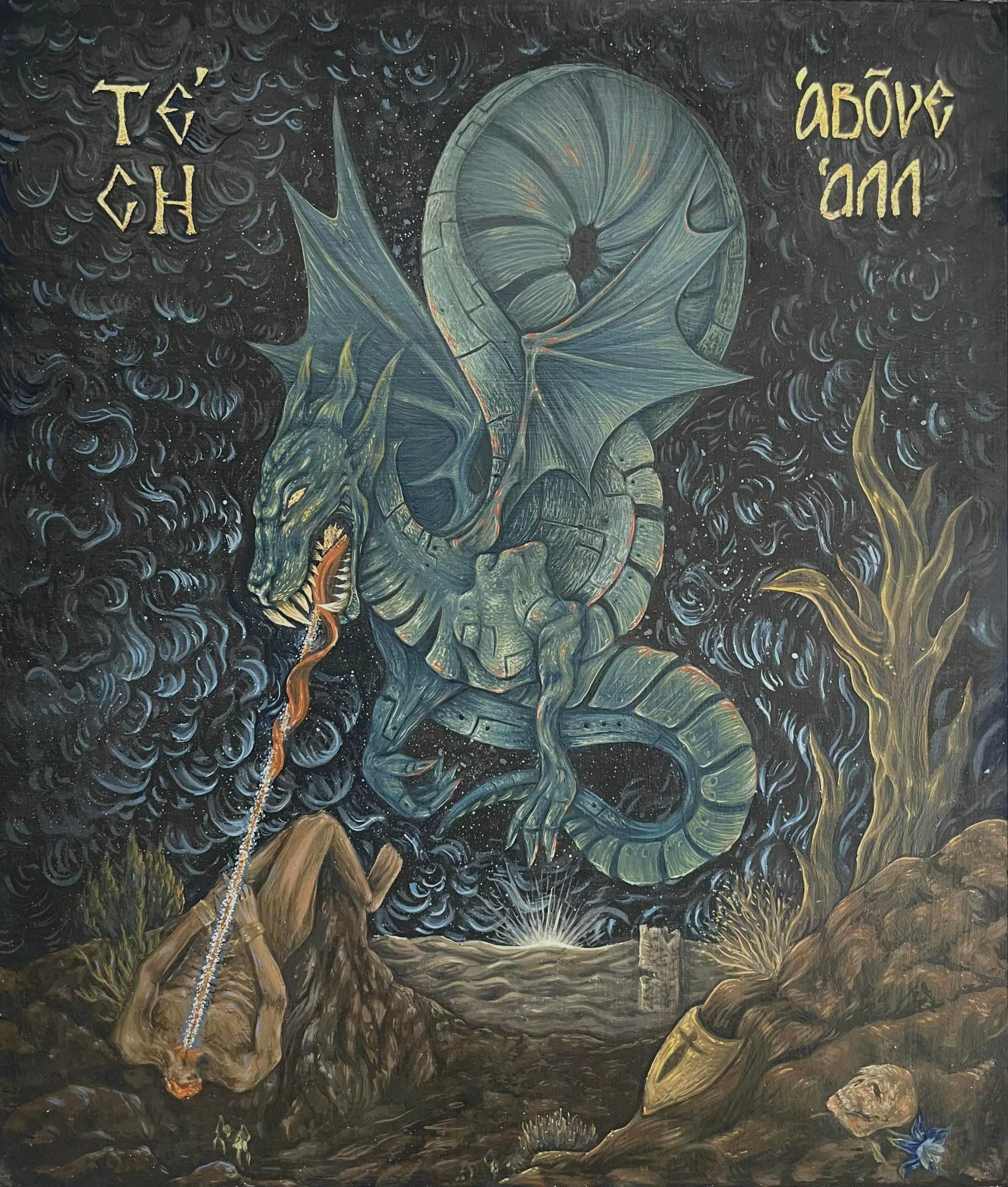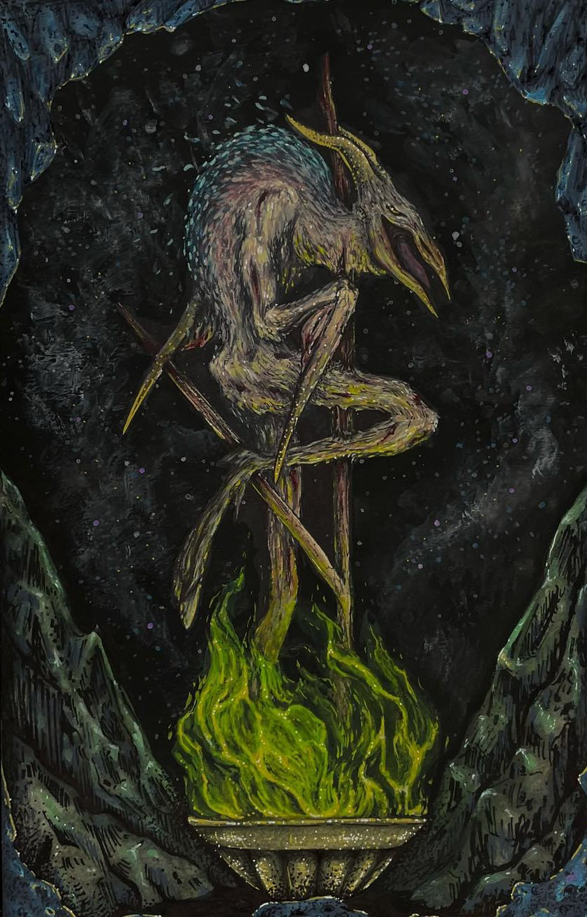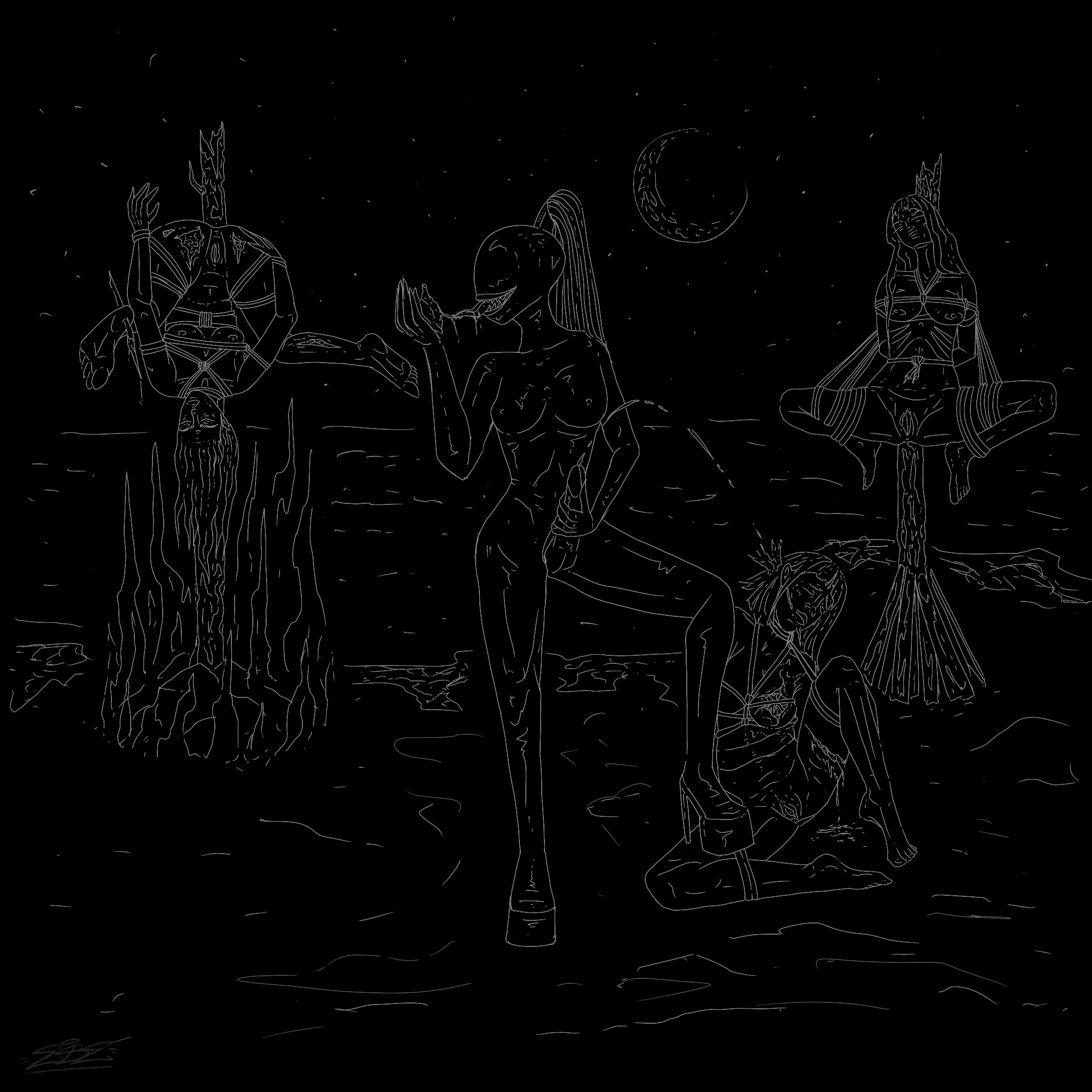 Experimental fine artist with dark oriented theme , sometimes with a splash of colors. Combines ancient and medieval art techniques (anaglyphs and iconography ) with religious symbolisms, mythology and adult content.
