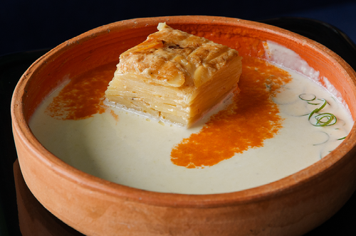 Peixe branco no vapor com beurre blanc, pérolas de tapioca e vinagrete de pimenta cambuci