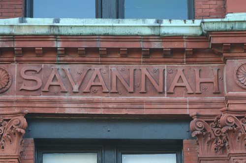 William Lee Stoddard designed the Hotel Savannah, and it opened in 1913. It features a vibrant, photogenic green and yellow tile design on the cornice of the building. In the 1970s, it became an office building and was renamed the Manger Building. After several years of vacancy, it is currently being renovated to become a hotel once again.