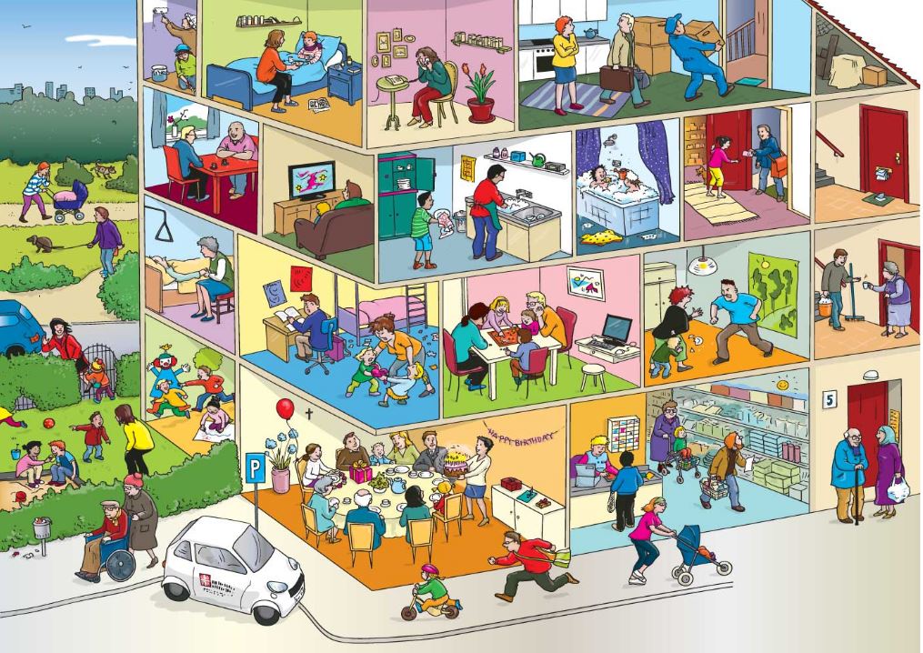 c. Indique les activités pratiquées par les personnes dans cet immeuble.