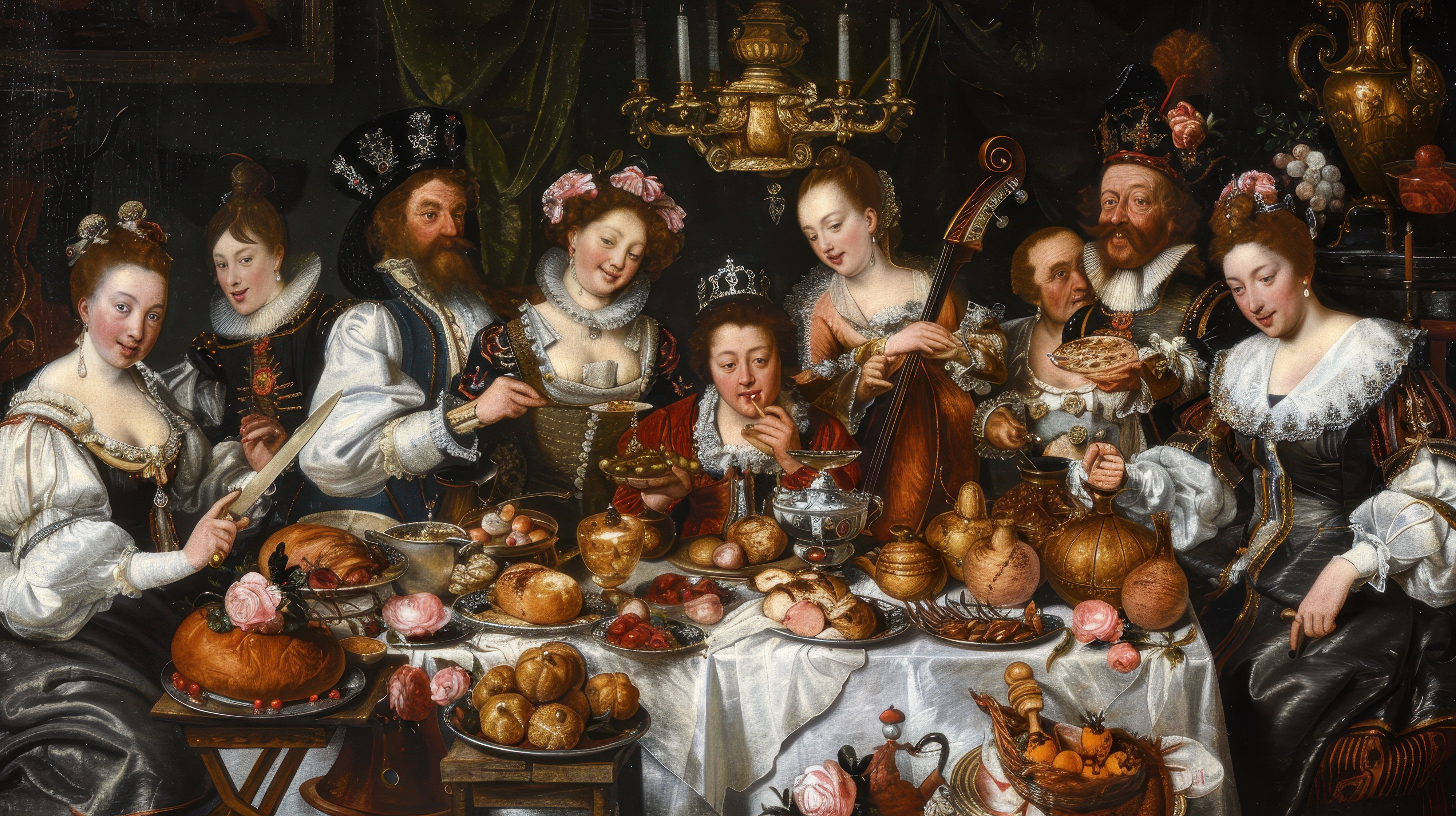 Created with images by Ifti Digital - "A painting depicting two cherubs, one holding a bow and the other aiming an arrow, in a detailed and vibrant scene, Cupids playing in a celestial garden, AI Generated" • Salsabila Ariadina - "Feasting in a Richly Decorated Interior" • Andrea Izzotti - "pompei ruins paintings and mosaic"
