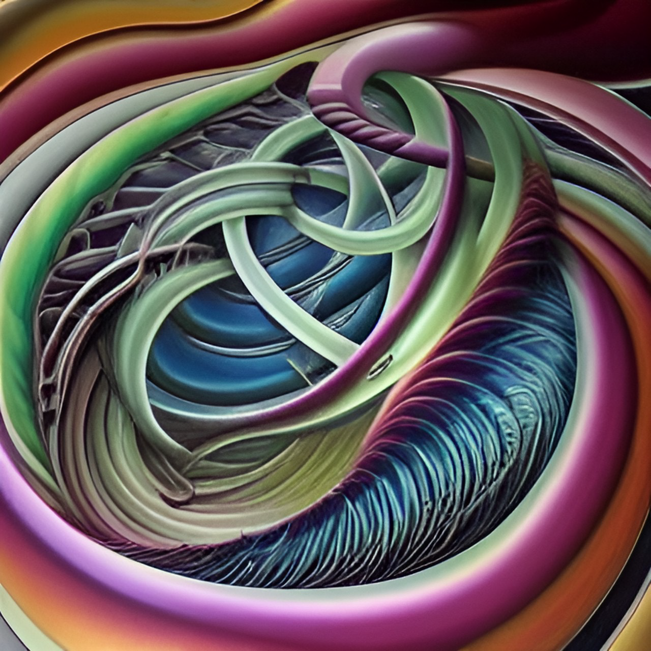 A highly detailed airbrush painting using this parametric equation to create captivating art, x(t) = A * cos(a * t) * cos(t) + A * sin(b * t) * cos(t) and y(t) = A * cos(a * t) * sin(t) + A * sin(b * t) * sin(t), where 'A', 'a', and 'b' are constants, and 't' ranges from 0 to 7π.
