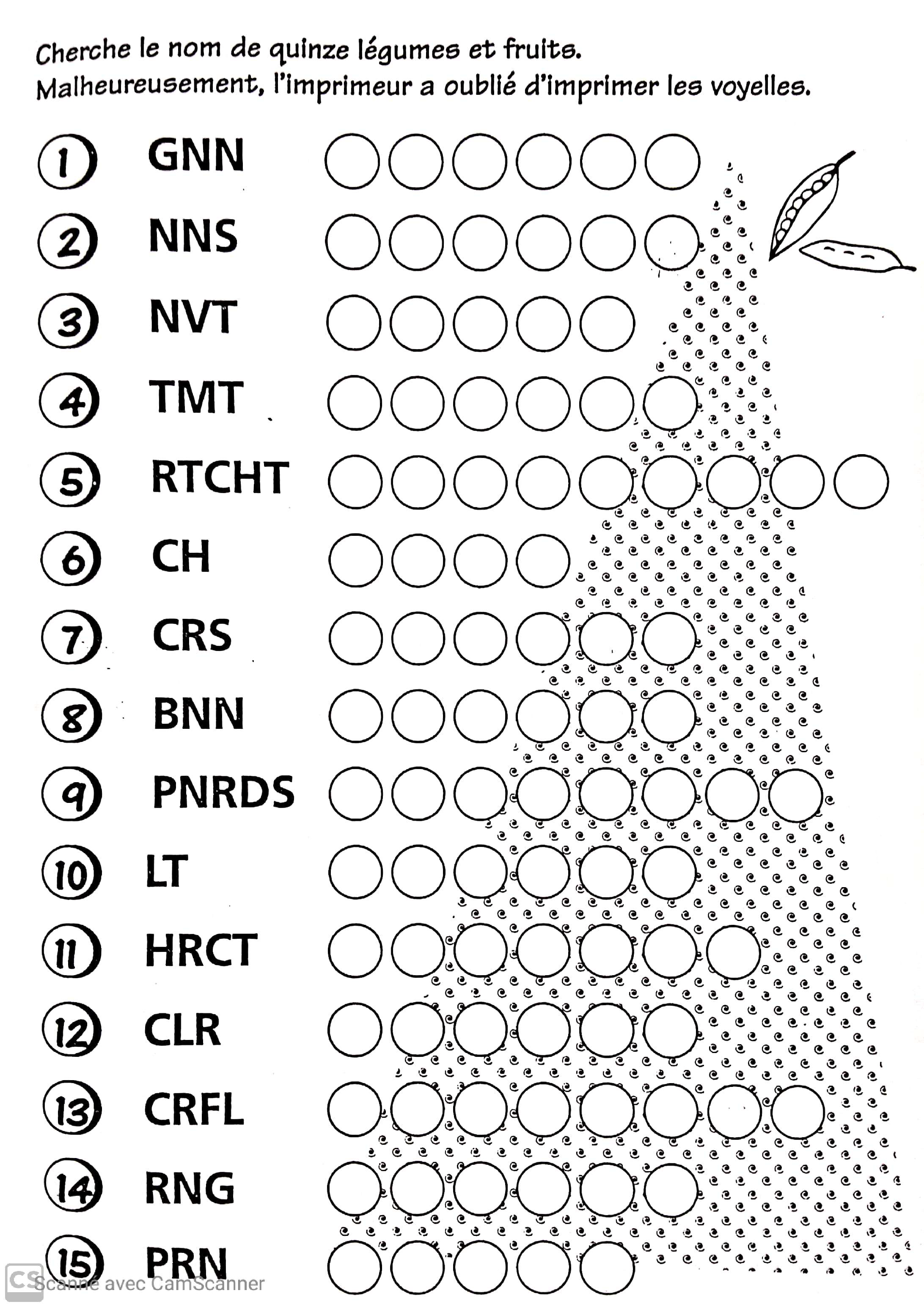 Vocabulaire et orthographe : Cherche ces fruits et légumes, il manque les voyelles !