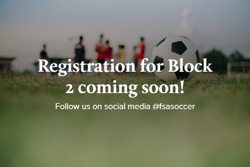 Registration for Block 2 coming soon!Follow us on social media @fsasoccer