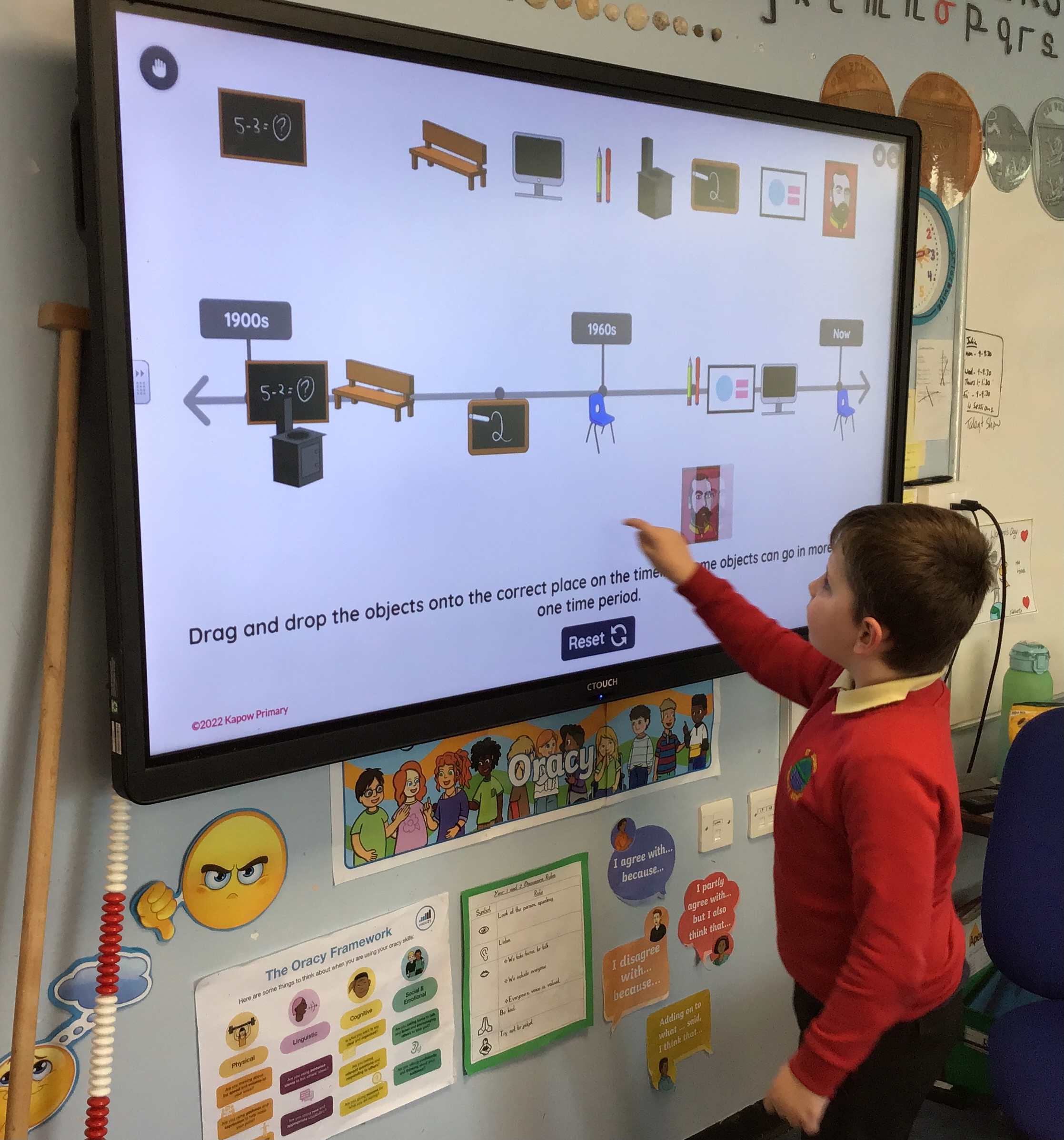 Year 2 have been time traveling again this week. The children have been exploring what schools were like in the 1900's, comparing them to the classrooms of today. They examined the different features of old and modern schools, sketching out what a typical classroom would have looked like back then and now. Using a timeline, they counted back through the decades, carefully sorting objects into their correct time periods. The Children were fascinated by slate boards, ink wells, and strict rows of desks, so different from the bright and interactive spaces they learn in today.