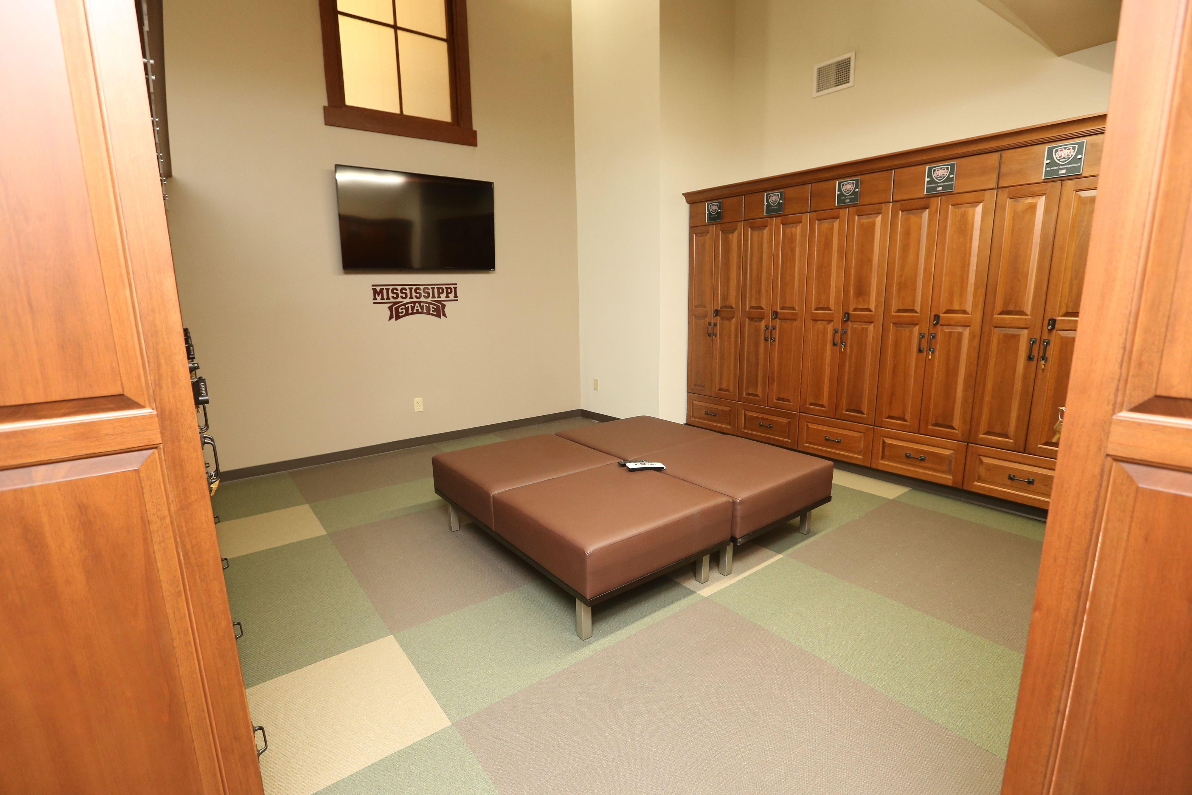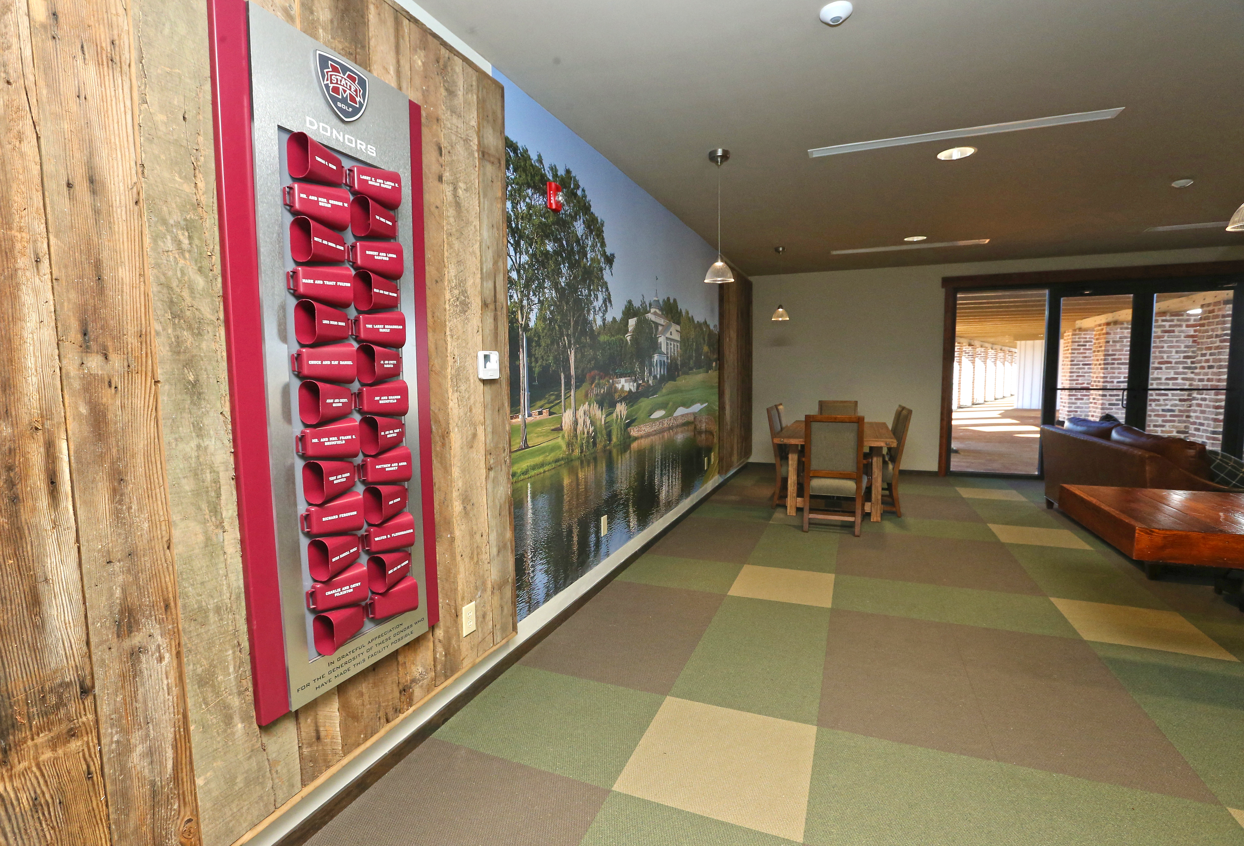 The inside of the 6,300-square foot team clubhouse includes men’s and women’s locker rooms, a workout room, coaches’ offices, a conference room, bag storage and more.