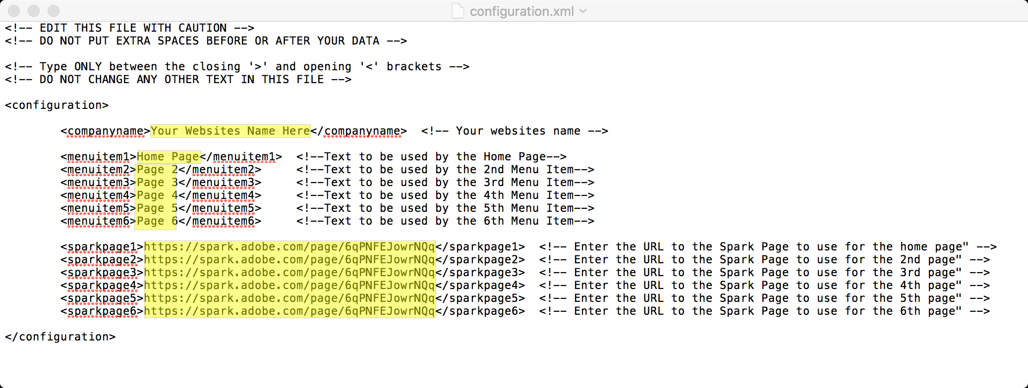 - Open the "configuration.xml" file using any plain text editor and enter your information in the areas shown below and save the changes
