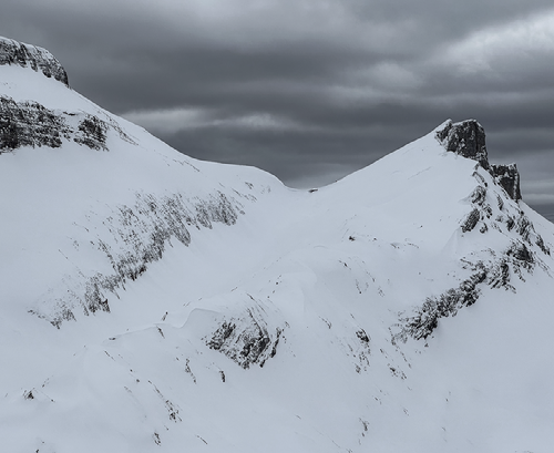 La saison 23-24 et particulière. Peu de neige et des températures de printemps en janvier-février. La météo annonce des éclaircies mais nous voici partis pour une journée dans les tons de gris. Il n'y avait quasiment pas de couleurs durant toute la journée. Une ambiance très particulière. Un ski meilleur que prévu!