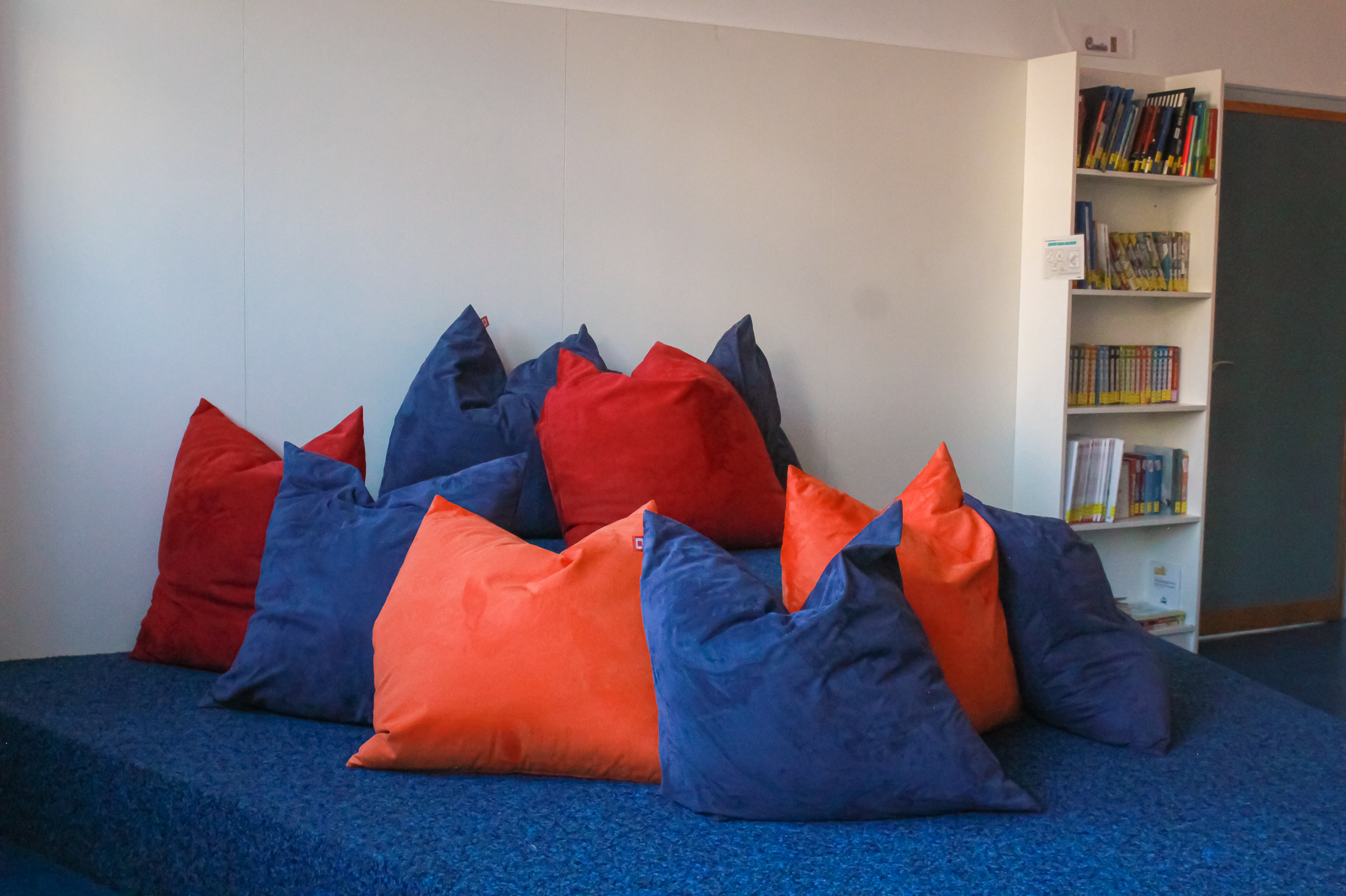 Diese Klassenzimmer sind ebenfalls hell, freundlich und bunt gestaltet. In der gebundenen Ganztagsklasse hast du mehr Stunden in deinen Hauptfächern, Übungsmöglichkeiten in unseren Lernbüros, aber auch die Möglichkeit aus einem breiten Angebot an Aktivitäten zu wählen. Arbeits- und Entspannungsphasen wechseln sich über den Schultag hinweg ab.