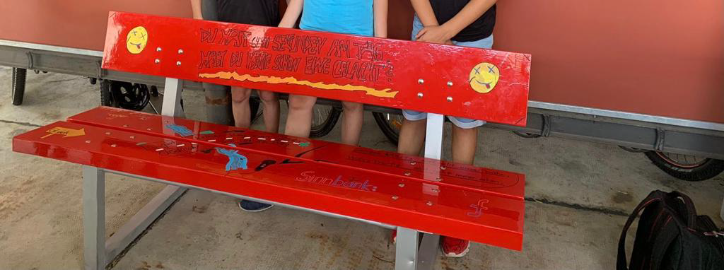 Hier siehst du den Schulhof, wo du in den nächsten Jahren deine Pause verbringst. Du kannst auf den Bänken deine Brotzeit genießen, eine Partie Tischtennis spielen oder einfach mit deinen Klassenkameradinnen und Klassenkameraden spielen und dich über den Tag austauschen