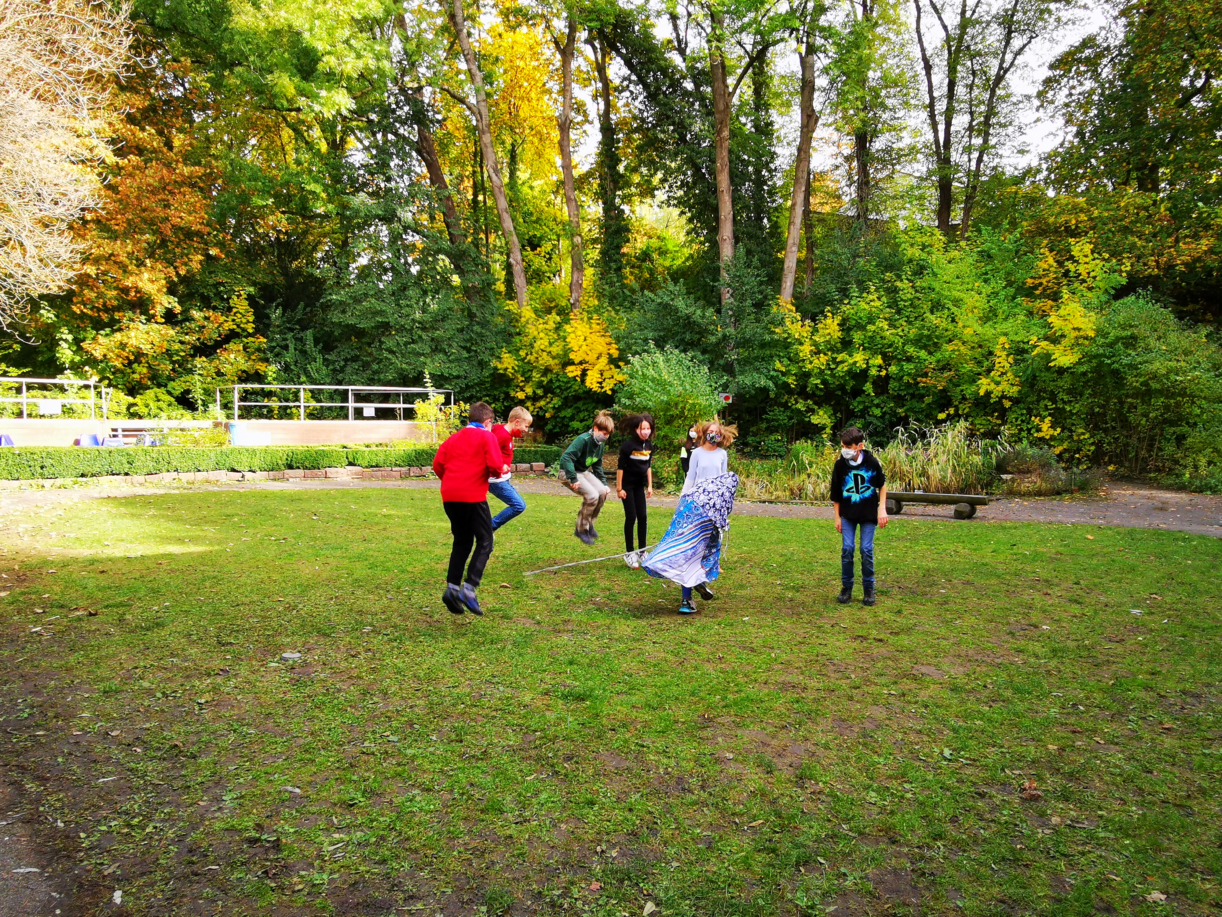 Auf dem Weg dorthin zeigen wir dir unseren Schulgarten. Schau mal, wie schön der Garten ist - zu jeder Jahreszeit! Er lädt zum Verweilen in den Pausen ein und im Sommer nutzen wir ihn als grünes Klassenzimmer. Auf unserer Außenbühne können wir den Unterricht einmal anders erleben und die Konzerte und künstlerischen Darbietungen der Schulfamilie genießen. Vor allem unsere Ganztagsklassen nutzen am Nachmittag das Angebot des Schulgartens.