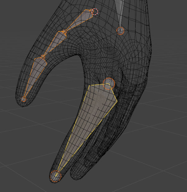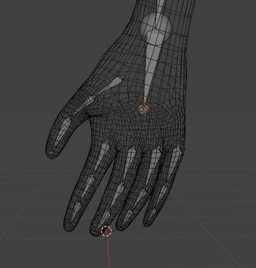 The same philosophy for bone-placement applies to the fingers. Because the bones of a finger lay on the top of the hand, I place my armature akin to a real finger.