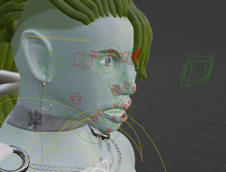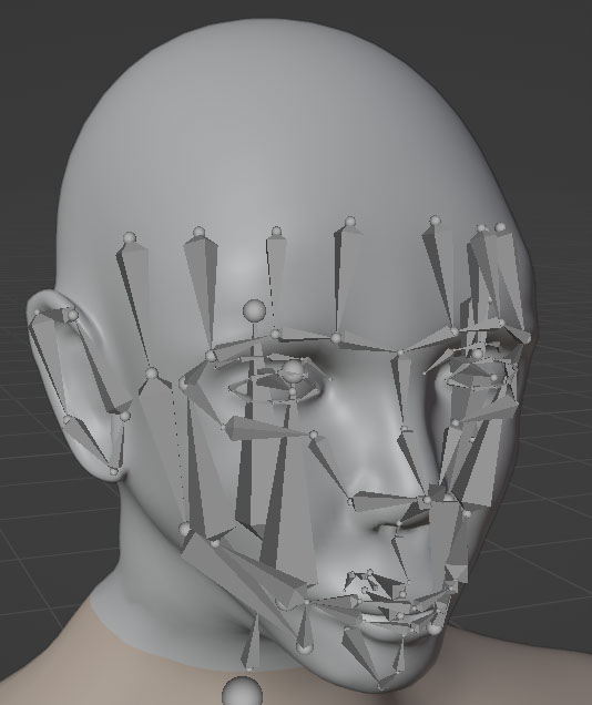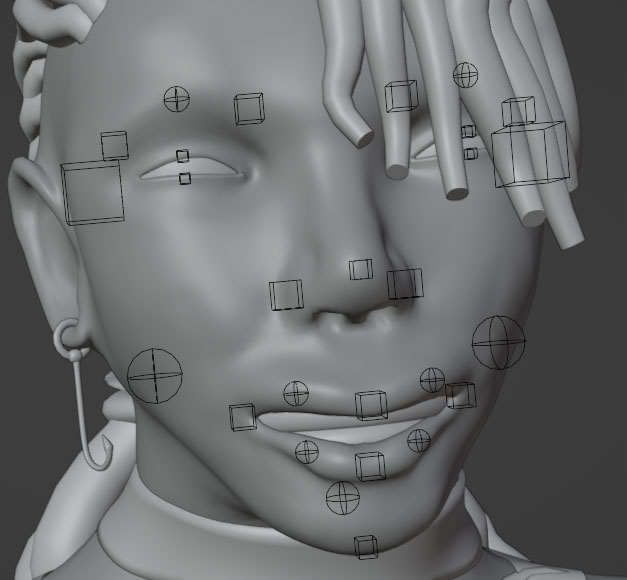 The rigify comes with an assortment of rigging layers for modifying the body. The face in particular has three different control schemes: basic, primary, and secondary layers. I use these tools to modify the