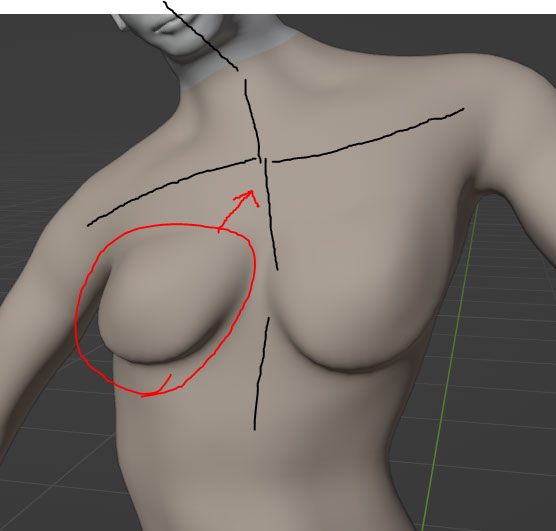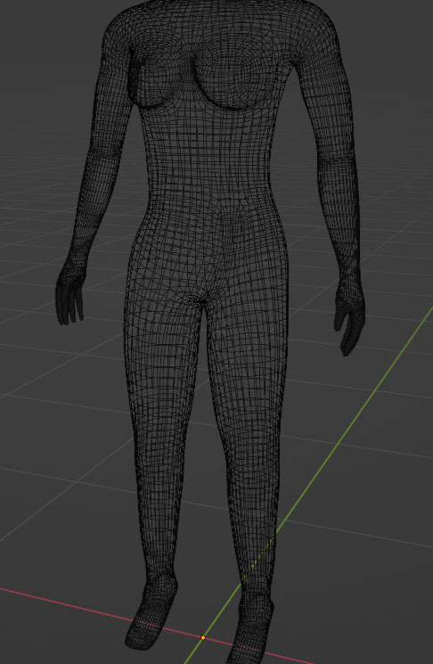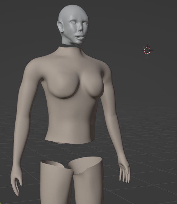 I removed some parts of the original mesh that were no longer visible. The idea being that it will reduce the amount of clipping issues between the apparel laying atop these areas. The breasts did not cull, but I would later remove them as their wire mesh would mysteriously show through the bra when rendering (only from afar).
