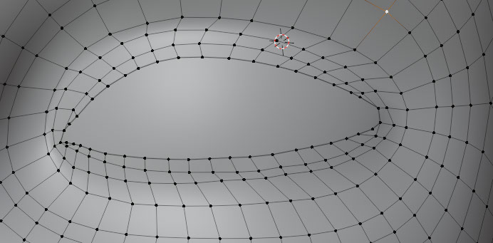 Originally, my kelpie had eye sockets shaped into the back of her head. Because the eyelids went over them, this caused odd shadows to appear in the smoothing groups. I promptly removed them.
