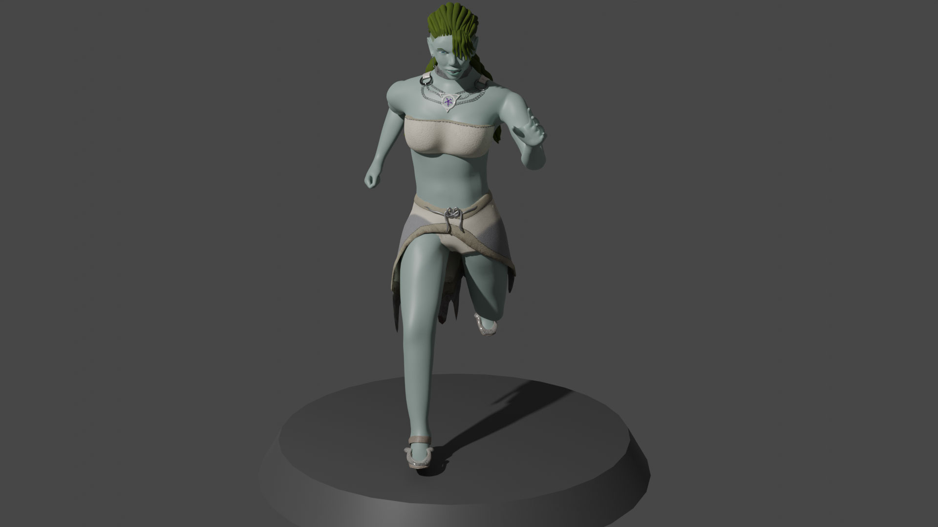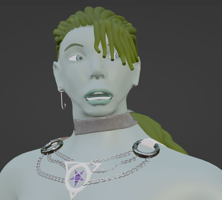 Looking back on my model, I was unsatisfied with the colour scheme I had chosen. The choice of white skin and red hair, while natural (and Scottish), it made the Kelpie lack a mythical, witchy feel. Now that I had to remake my base colours due to retopologising the face, I switched to a paler, greener scheme.