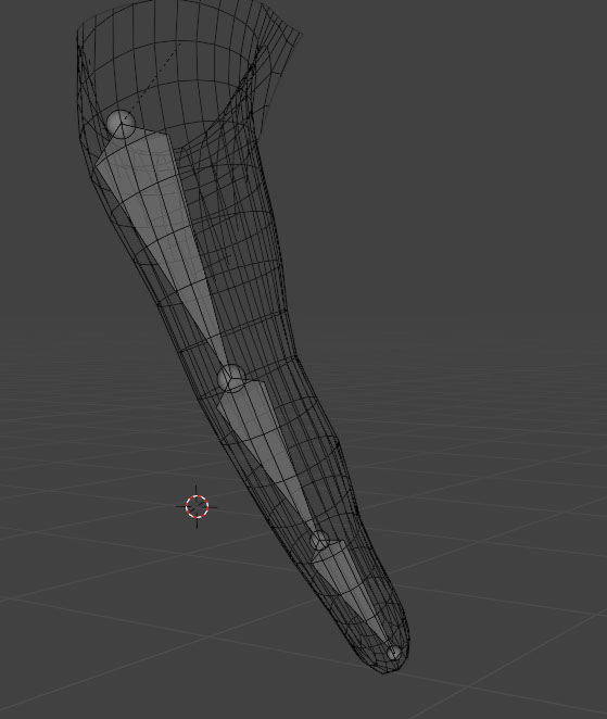 Using similar philosophies from the prior rig, I place the premade bones into places where the muscle-strength would be most effecive.