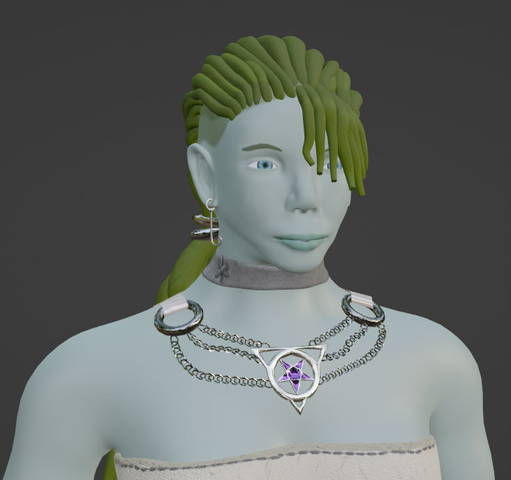 A blessing in disguise of my prior mistake (making the head and body different objects) is that only the head needed to be baked. Put the choker back on and no one will be any the wiser.