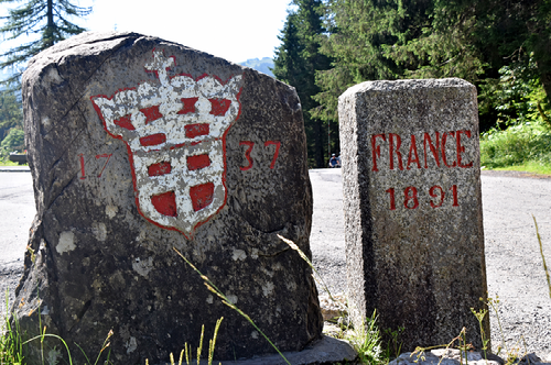 Ci-dessus : Pas de Morgins, frontière France - Suisse 1737 avec la croix de Savoie couronnée du royaume de Sardaigne.