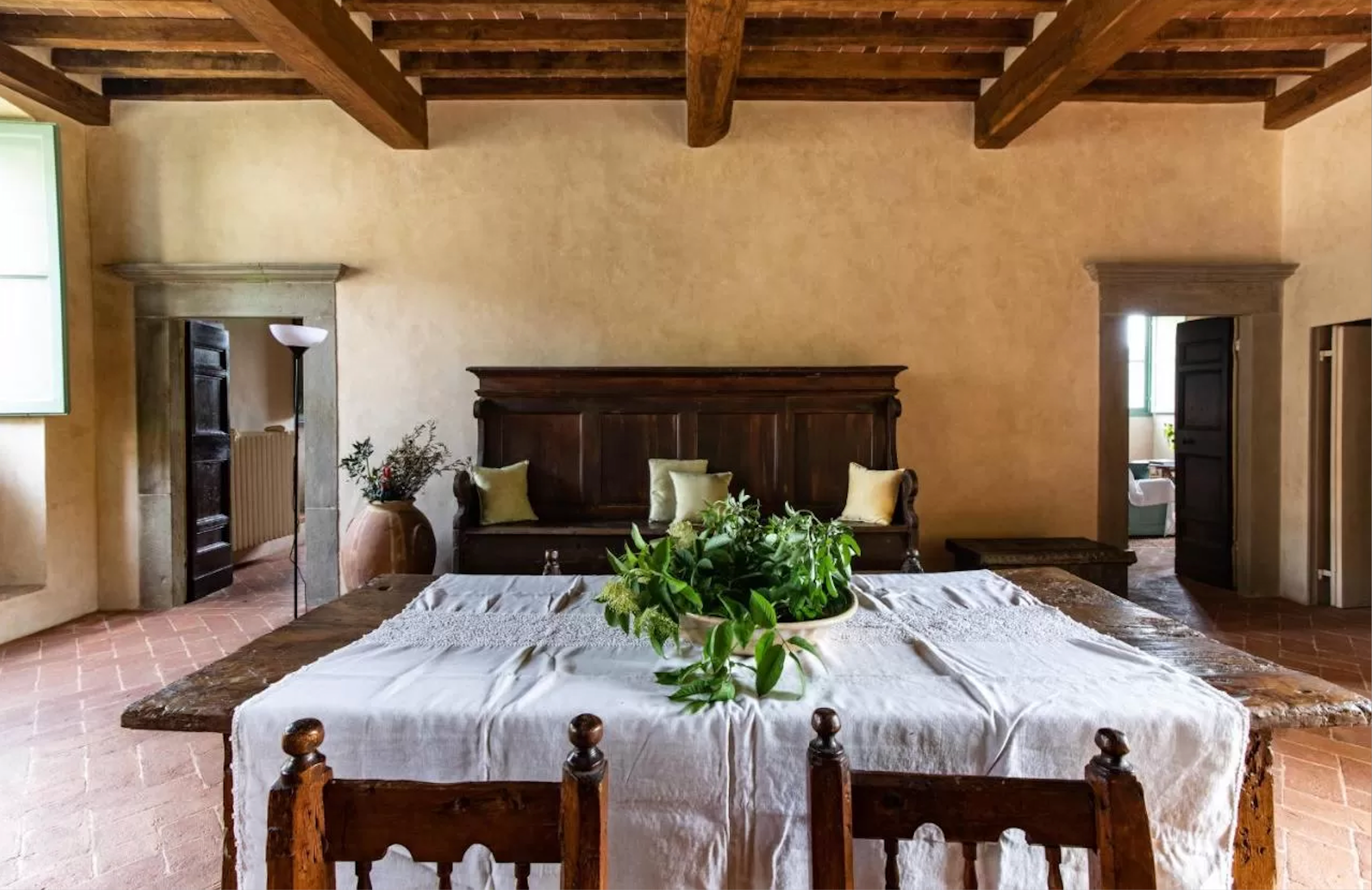 How big is the plot and how much space is usable? The property measures 25 hectares of land, consisting of vineyards, olive groves, woods, meadows, farmland, a mineral water spring and 17 buildings with a total area of 3600 sqm. The centrepiece is the 16th century Villa Barsotti, lovingly restored and furnished true to the original.