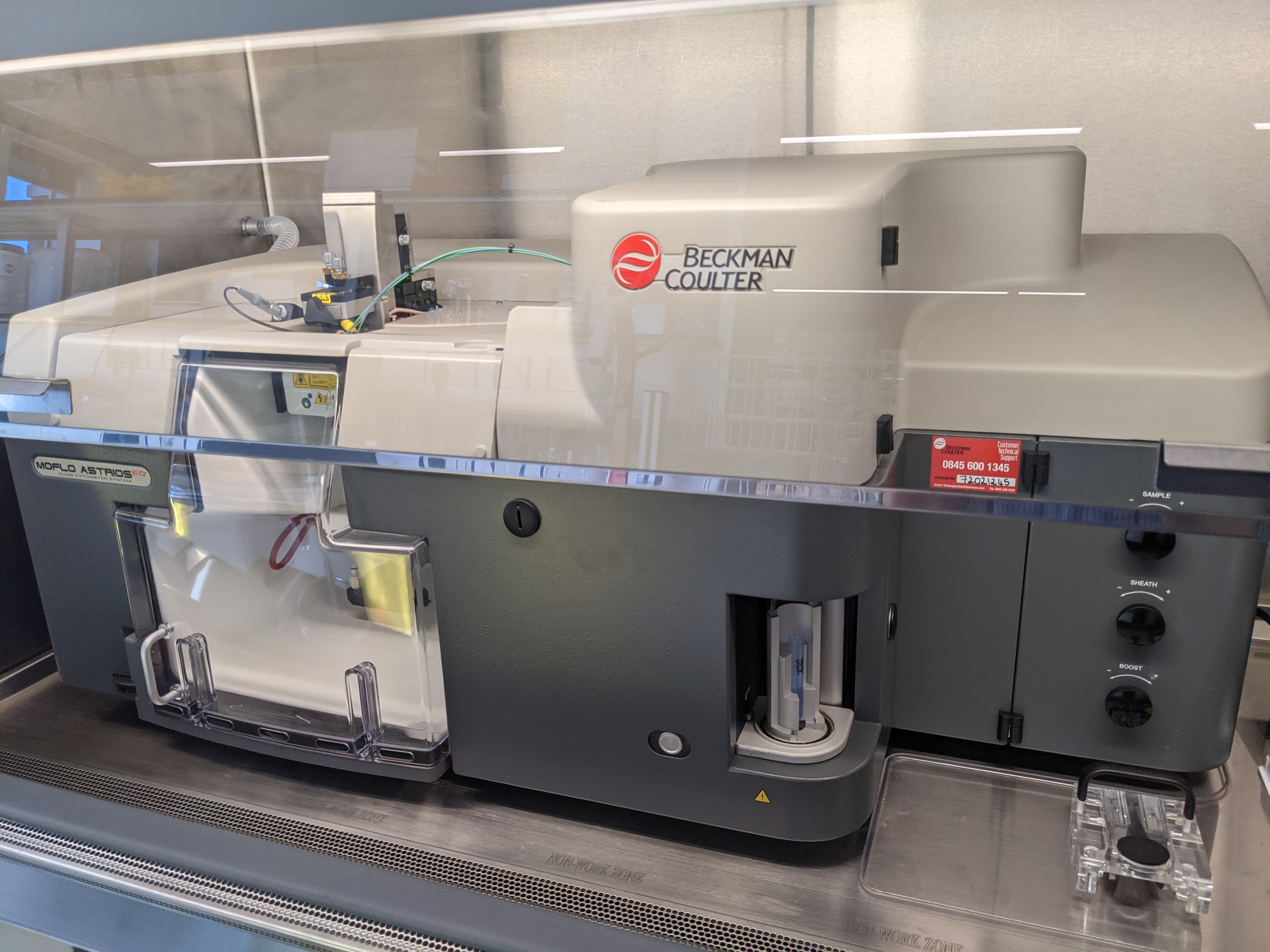 MoFlo Astrios EQ at NHC is a high-speed flow cytometer from Beckman Coulter, enabling both cell characterisation and cell sorting.