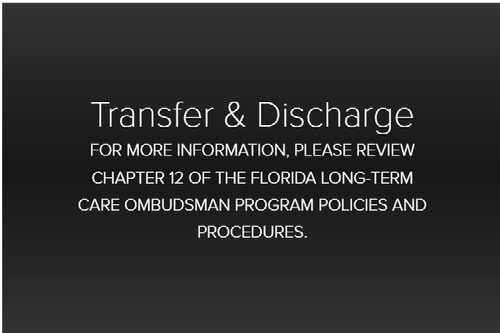 For more information, please review Chapter 12 of the Florida Long-Term Care Ombudsman Program Policies and Procedures.