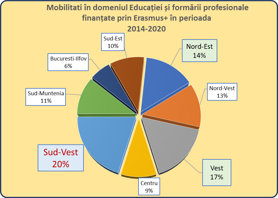 În perioada 2014-2020, Programul Erasmus+ a sprijinit 361 de instituții/organizații din România să implementeze un număr de 804 proiecte de mobilitate în domeniul educației și formării profesionale.
