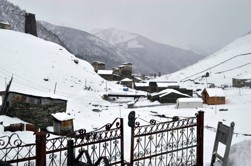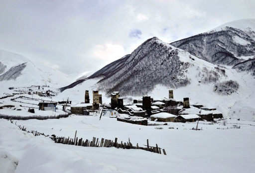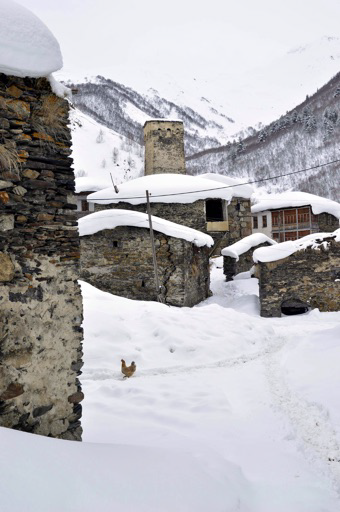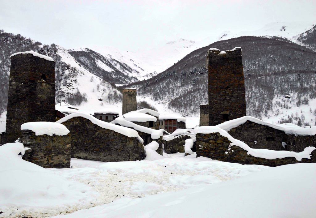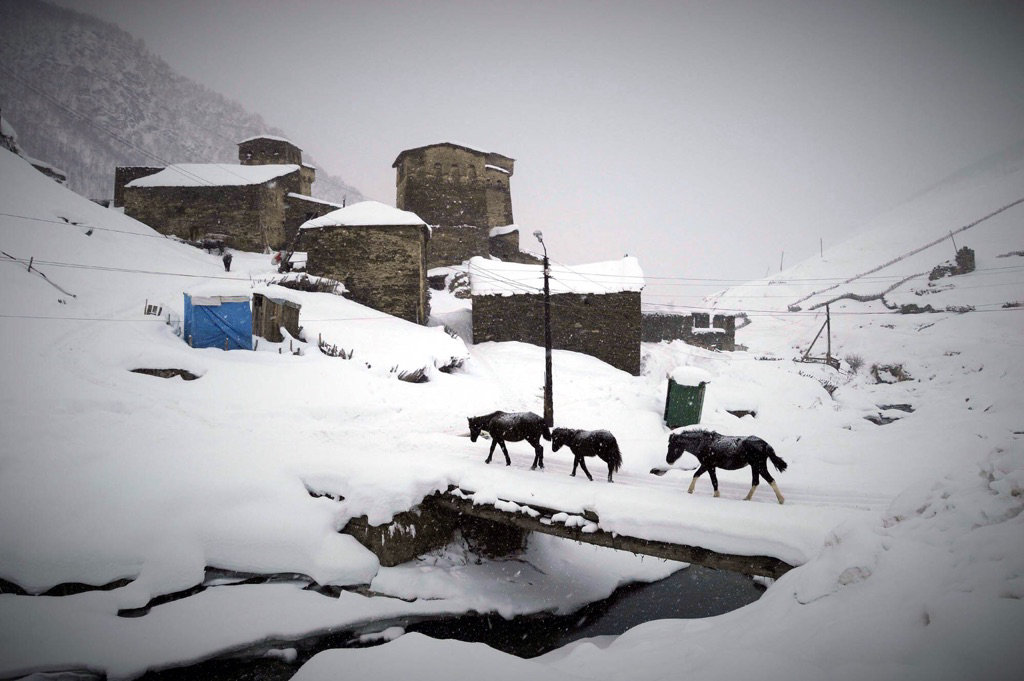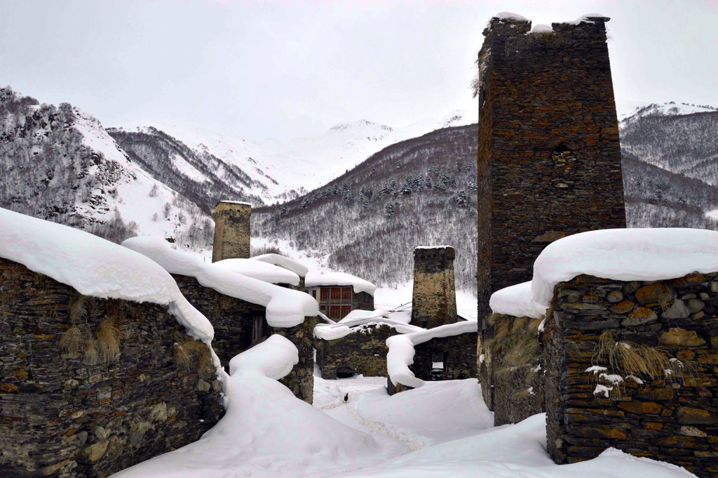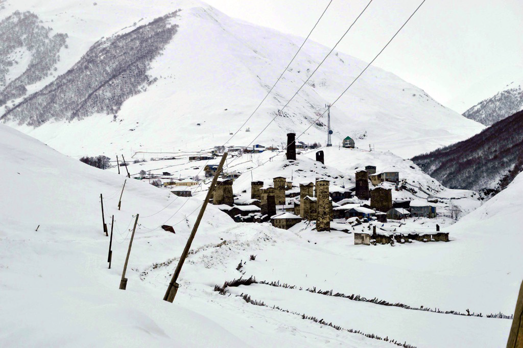 Llegamos a Ushguli al final de la tarde, en su alto y remoto valle, sin ni una sola carretera de acceso antes de la década de 1930, y aún aparentemente inmune al paso del tiempo. Rodean el pueblo unas laderas blancas suaves de campos cubiertos de nieve que se elevan gradualmente hasta los picos dominantes allá arriba. Apenas queda una hora de luz para explorar las torres defensivas svan, las estructuras más características de la región, o para tener una primera idea de esta población extraordinaria. Es patrimonio mundial declarado por la UNESCO y se define como el asentamiento más alto de Europa que permanece habitado todo el año.