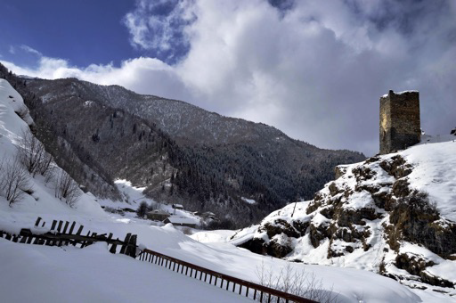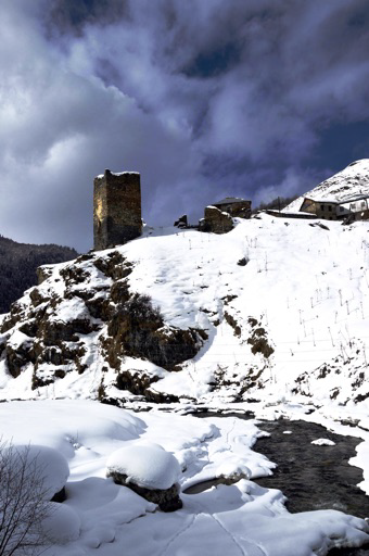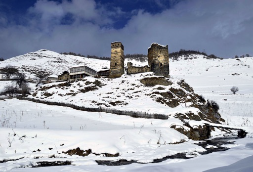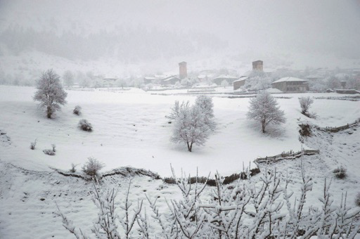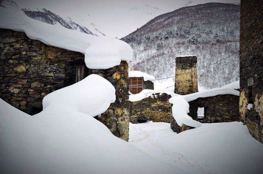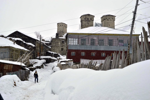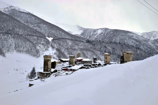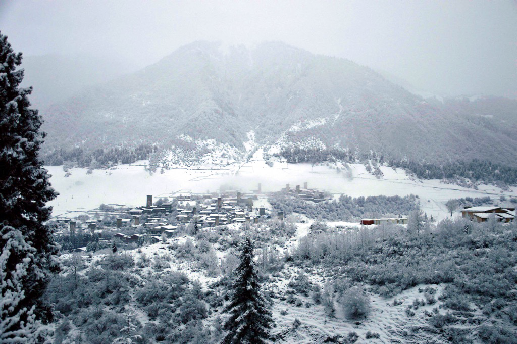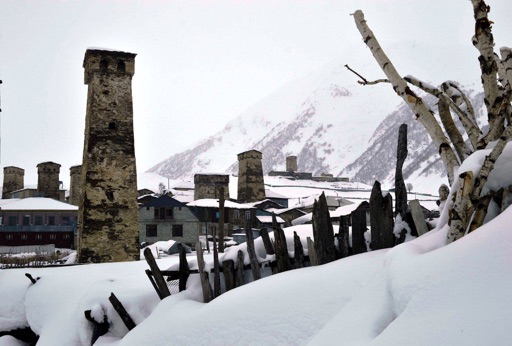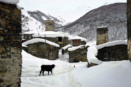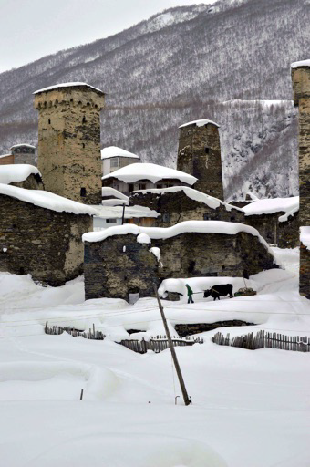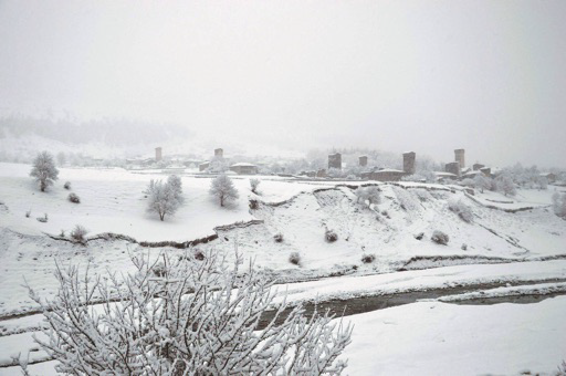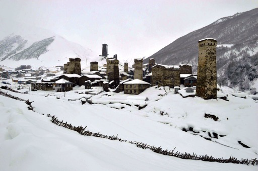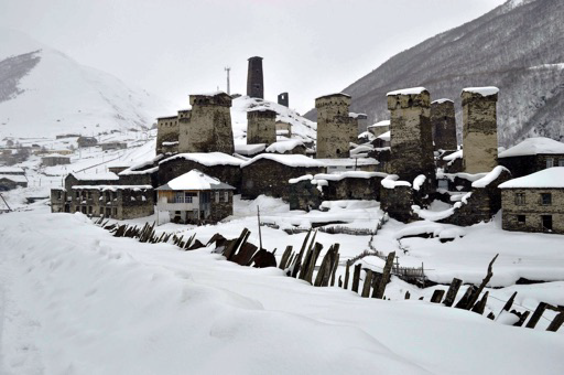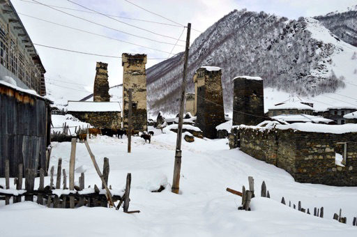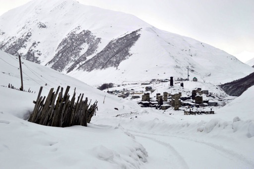 Llegamos a Ushguli al final de la tarde, en su alto y remoto valle, sin ni una sola carretera de acceso antes de la década de 1930, y aún aparentemente inmune al paso del tiempo. Rodean el pueblo unas laderas blancas suaves de campos cubiertos de nieve que se elevan gradualmente hasta los picos dominantes allá arriba. Apenas queda una hora de luz para explorar las torres defensivas svan, las estructuras más características de la región, o para tener una primera idea de esta población extraordinaria. Es patrimonio mundial declarado por la UNESCO y se define como el asentamiento más alto de Europa que permanece habitado todo el año.