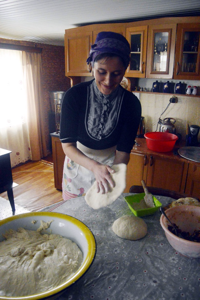 Llegamos a la casa. Una mujer se asoma a la ventana para observarnos. Nos invita a entrar en una cocina cálida, humeante, donde está preparando la khachapuri para la cena familiar. Nos hace un hueco en la mesa.