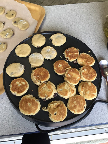 Then, put your leftover butter to a warm pan with your Welsh cakes and take them of once they look golden brown.